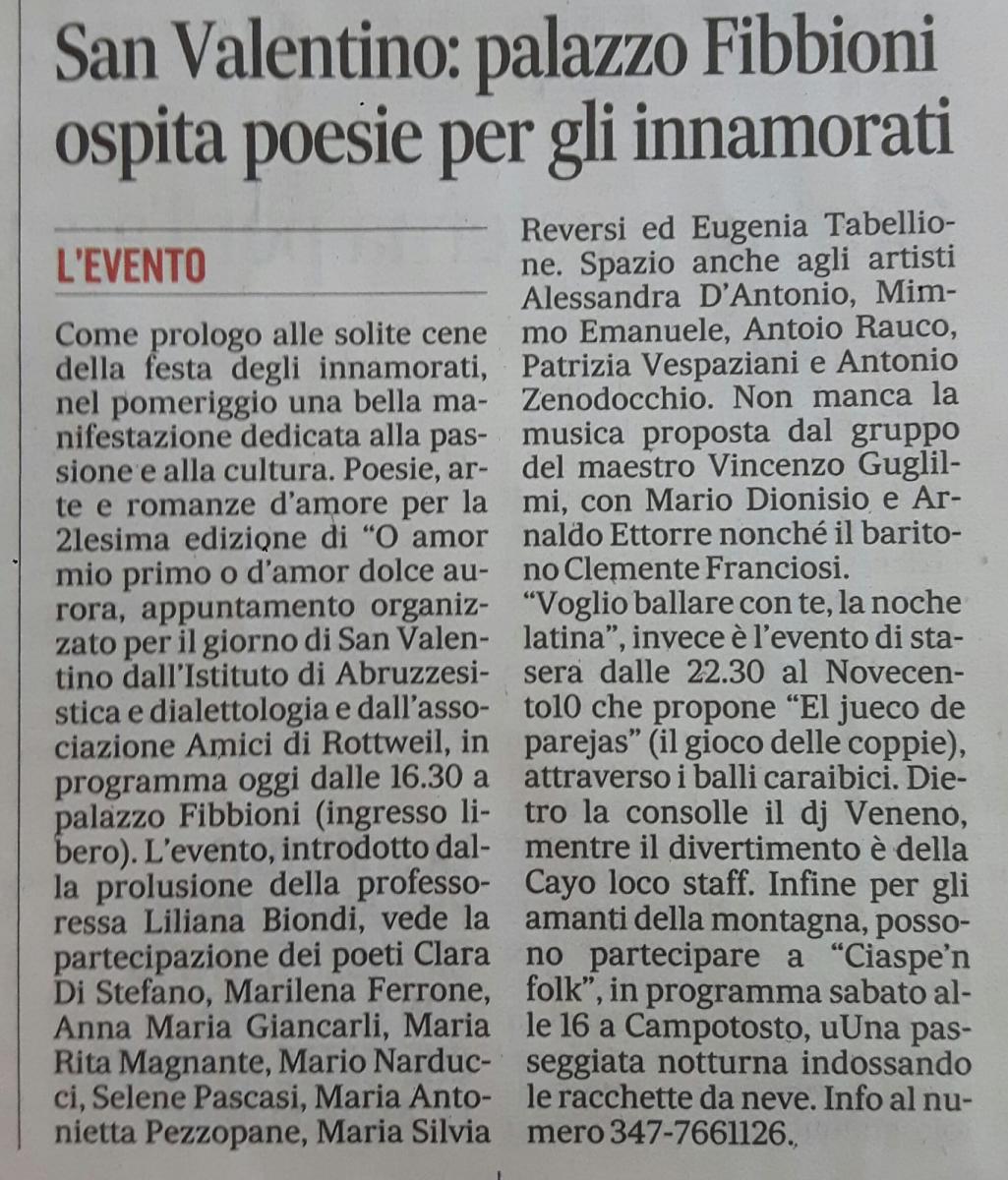 San Valentino: palazzo Fibbioni ospita artisti e poeti
