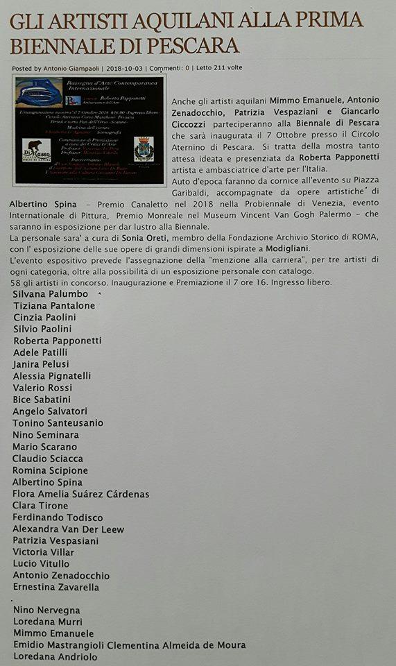 Articolo Abruzzo web del 20 luglio 2018 relativo al premio "Fontane di Roma"
