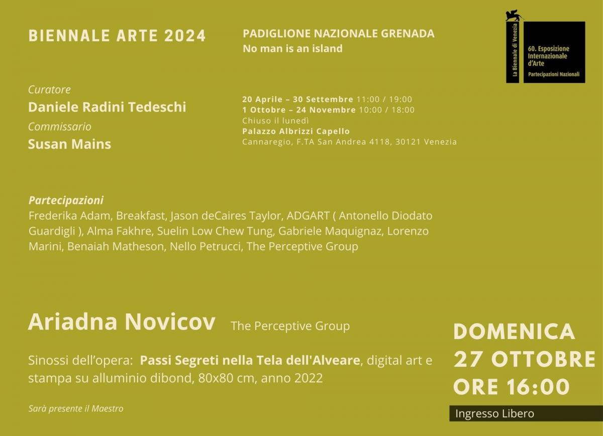 Ariadna Novicov - member of the collective The Perceptive Group - will be present on October 27, 2024 at Palazzo Albrizzi Capello 4118 Canareggio, Venice, for the synopsis of her work "Secret Steps in the Beehive Web