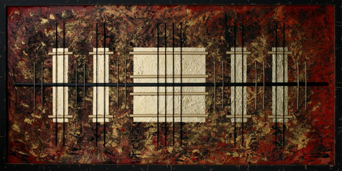 - Tecnica: mista acrilico foglia oro legni e corde