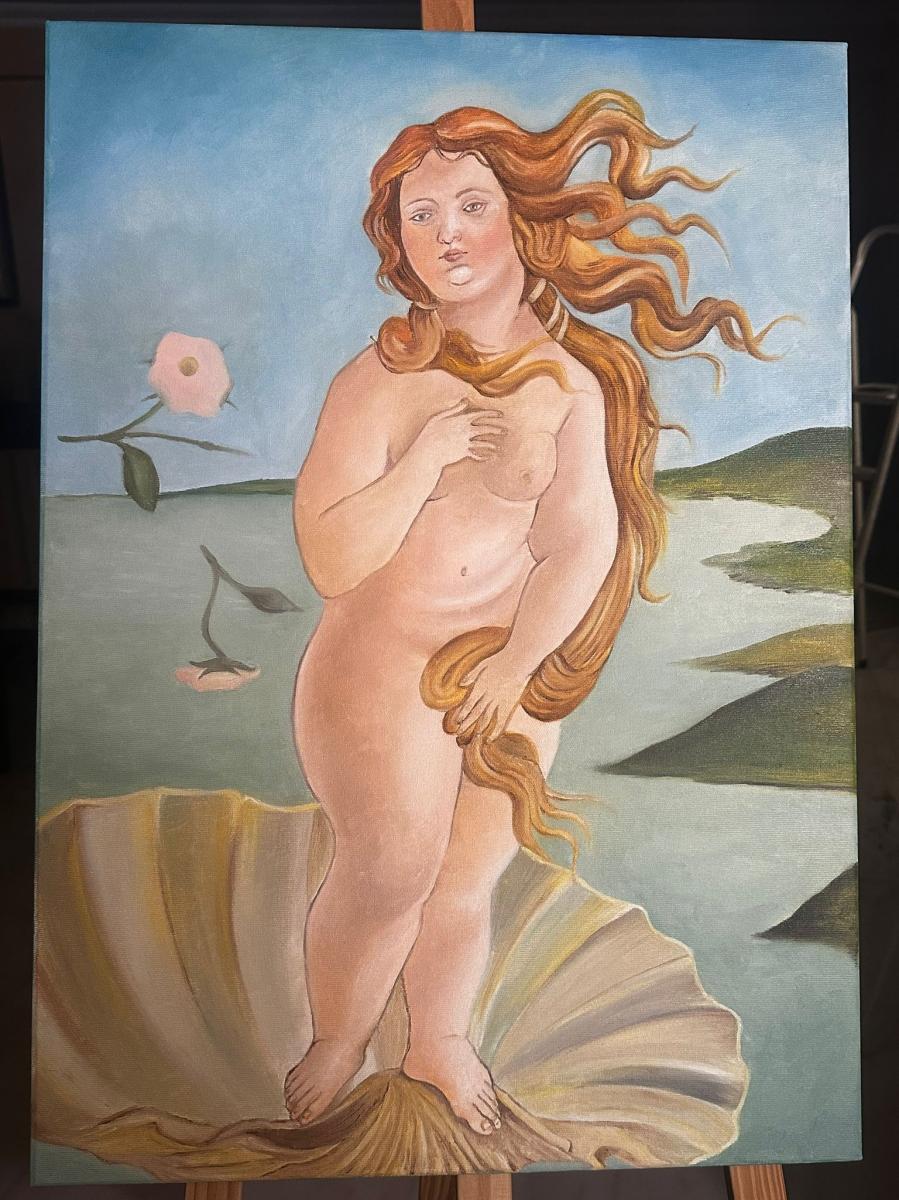 L’opera è una rivisitazione della Venere di Botticelli con lo stile di Botero.