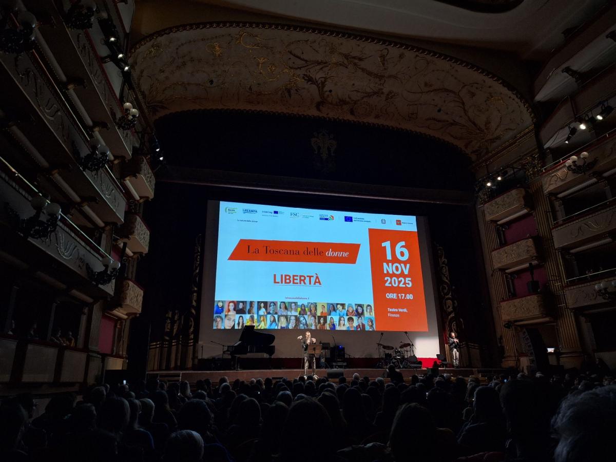 LA TOSCANA DELLE DONNE 2025 al Teatro Verdi - Anche questo anno ho voluto esserci al Teatro Verdi per la serata di apertura de La Toscana delle Donne.L’evento, alla sua quarta edizione, promosso dalla Presidenza della Regione Toscana ed ideato dal capo di gabinetto Cristina Manetti, si snoderà in settimana tra incontri, dibattiti, mostre e spettacoli come quello di oggi.Un’edizione che festeggia “la libertà in tutte le sue forme” e vuole celebrare gli 80 anni dal primo voto delle donne in Italia, la nazione dove ci si incontra e non ci si arrende, si tracciano rotte, segnano cammini verso l’emancipazione femminile, il rispetto delle idee e l’uguaglianza di genere, dove si lotta contro la violenza.Edoardo Leo, affascinante e bravo attore, sceneggiatore e regista romano, fa da apripista con la lettura della parte conclusiva di “Lo Stupro” di Franca Rame, le sue osservazioni sono come fiamme che incendiano la sala. Riceve la panchina multicolore di Marco Lodola, si chiama “L’attesa”, un’opera che viene consegnata anche alla carismatica e bellissima cantante napoletana Simona Molinari che con il suo show incolla e manda in visibilio tutti i presenti, facendo riflettere. Alla fiorentina Chiara Francini in veste di scrittrice ed al suo monologo sul coraggio, autentico e profondo, forte e potente, va la parte finale dello spettacolo oltre al premio.Un brindisi aspetta i partecipanti all’uscita assieme ai gadget, dove in oro, spicca tra tutti il balsamo per le labbra e l’ombrello rosso con impresso il numero anti violenza e stalking 1522.Prendo il cappotto dal guardaroba e penso che stasera andrò a festeggiare con la mia amica Alessia; assieme costruiremo simbolicamente un inno, naturalmente, alla libertà!