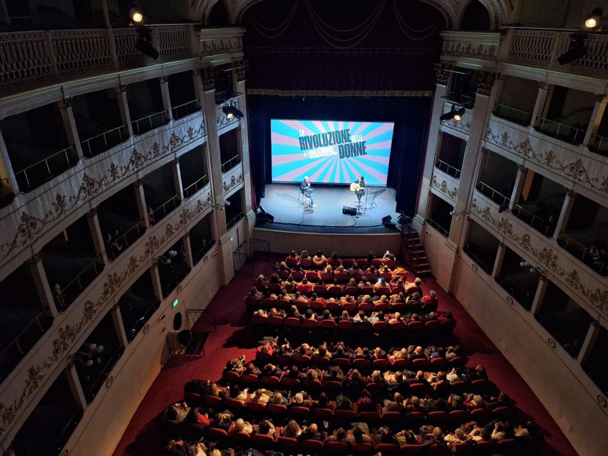 L'EREDITA' DELLE DONNE 2025 - Un Teatro Niccolini pieno per lo spettacolo a metà tra teatro, reading e musica della cantante Paola Turci e del giornalista Gino Castaldo che portano in scena tra frame di docufilm canzoni e letture “le voci femminili che hanno segnato la storia”.Dalla “piccionaia”, luogo più in alto da dove osservare, ascoltare e fotografare all’ottimo delle possibilità “la rivoluzione delle donne” assieme alla mia amica Giulia, con me anche stasera a condividere il momento, seduta e poi in piedi, mi aggiro per cogliere la prospettiva e l’acustica.Quando scendo, è solo per partecipare, in platea, alla serata di Serena Dandini, dove in “What if? Intelligenze femminili” dialoga con Elena Cattanea, Gaja Cenciarelli, Chiara Valerio, Francesca Vidotto e Bill de Blasio, sulle conquiste fatte, il ruolo del pensare femminile nella scienza e nella società in generale. Non apprezzo particolarmente gli scambi tra le due scrittrici ma piacevolmente le ascolto quando parlano singolarmente. La scienza invece, detta leggi anche quando fa spettacolo e zittisce i presenti sulla profondità di grandezza. Sulla strada del ritorno a casa ripenso all’intensa ed emozionante giornata che volge al termine e a quanto impegno e candido entusiasmo ho messo ancora una volta per seguire le mie passioni.