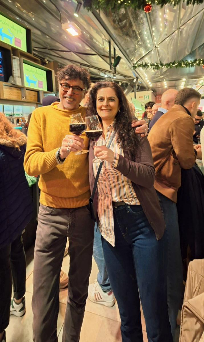 LA BIRRA con BALADIN - degustazione guidata e presentazione della birra natalizia al Mercato Centrale di Firenze - Non sono un'abituée di questo mondo, ma appena i ragazzi del Mercato Centrale di Firenze mi hanno comunicato che TEO MUSSO, l'anima del Birrificio Baladin avrebbe presentato la sua nuova birra natalizia, la Belgian Ale con cacao e arancia (solo 8,5% vol.), in esclusiva, ho smosso mari e monti per essere presente.In attesa del suo arrivo, mentre la musica dei The Rads ci accompagna in sottofondo, scambio due chiacchiere con l'esperto Yuri, grazie al quale, in passato ho imparato tanto del settore, partecipando a degustazioni e soprattutto a veri e propri mini corsi di avvicinamento all'arte birraia.Così, dopo aver ascoltato con attenzione il prodigioso uomo raccontare la storia della sua idea, dalla nascita all'evoluzione fino ai giorni nostri, ho il piacere di incontrarlo di persona e di parlare con lui non solo dei progetti già in essere, come il capostite Open Baladin che apprezzai quando frequentavo gli ambienti romani, ma anche di quelli futuri, una nuova sede milanese, con giardino, che rispecchierà a pieno il suo stile.È una persona semplice e genuina, che con fare spontaneo mi porta nella sua terra, il Piemonte, nel suo paese, Piozzo, in provincia di Cuneo, dove tutto è cominciato.Lo conosco da anni attraverso gli aromi dei suoi prodotti che cura con passione, amore e savoir faire e quando lo ritrovo stasera, con il suo fare calmo e scherzoso, spumeggiante come la schiuma compatta della sua nuova creazione, che sa di cioccolato ed arancia mista a frutta secca e malto torrefatto, a retrogusto leggermente amarognolo, sono emozionata e contenta.Sperimentatore del birrificio "agricolo", inventore del TEKU, bicchiere per la degustazione della birra, presidente del Consorzio Birra Italiana a tutela delle produzioni artigianali Made in Italy, è nel consiglio direttivo di Assobirra.Primo italiano a contribuire alla diffusione della cultura birraia artigianale nel mondo, supporta il campionato italiano di homebrewing, organizzato dal Movimento Birrario Italiano.Mi piace il suo fare garbato e diretto con il quale mi invita a CASA BALADIN, un ristorante birrario con 5 camere dove vivere e toccare con mano un'esperienza unica.Prometto di andare a trovarlo assieme ad altri appassionati.Sono curiosa e stimolata dalla Cantina Baladin sorta nell’ex pollaio, luogo dove vino e birra raggiungono un connubio perfetto, grazie ad un affinamento in botti di legno vissute dall'inebriante liquido rosso o bianco.Processo di scambio oltre che di degustazione vera e propria, è lo stesso che intercorre tra lui e suo padre, produttore di vino. Mi saluta nominandomi i suoi oltre 300 dipendenti sparsi per il mondo, un traguardo notevole dice, che sicuramente verrà accresciuto nel tempo. Ci credo. Mi congedo. Sorseggio la mia birra con calma, è proprio come l'aveva descritta, gli faccio i miei complimenti e con una foto ricordo ci auguriamo buone feste. A presto Teo!