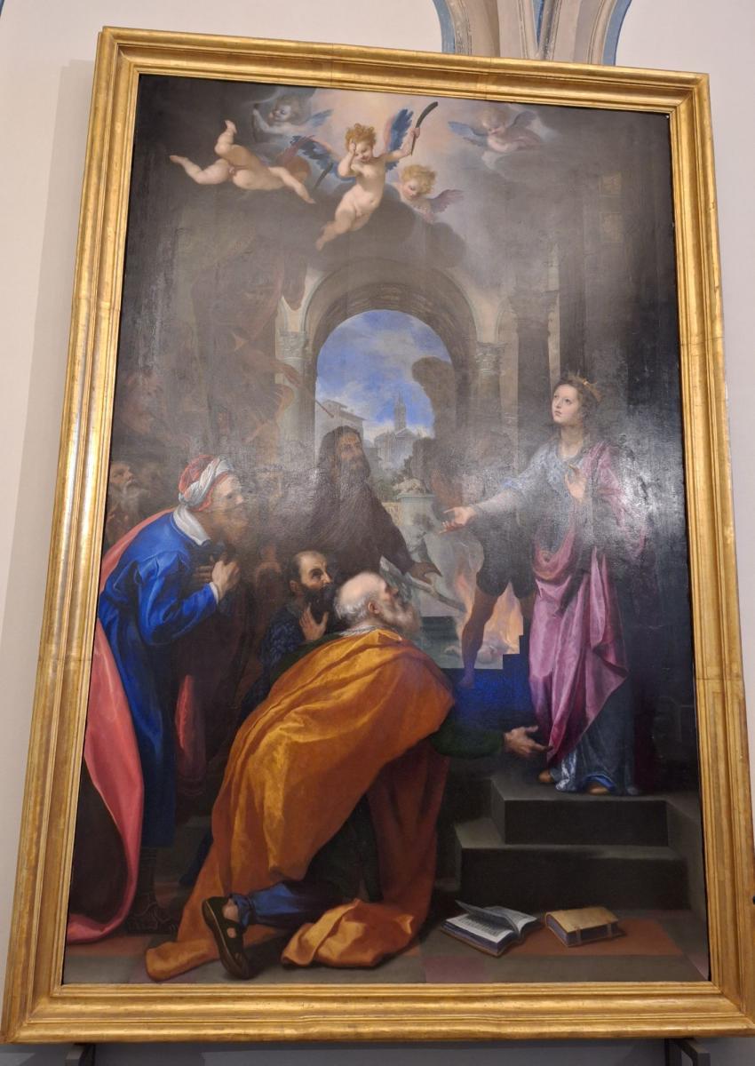SALE PREFETTURA nel Palazzo Medici Riccardi - Stamattina sono di corsa per arrivare puntuale a Palazzo Medici Riccardi, dove Giulia e Diego di MUSE aspettano nel cortile per accompagnare me ed un gruppo ristretto di persone ad una visita speciale. Avremo il privilegio di entrare in alcune sale della Prefettura di Firenze e di cogliere il pregio delle opere, di proprietà del Fondo Edifici di Culto (F.E.C.) del Ministero dell’Interno, provenienti dal trecentesco Monastero di Santa Caterina di San Gaggio al Galluzzo attualmente chiuso per lavori di restauro.Il tempo scorre veloce, le domande si susseguono così come le risposte della nostra simpatica e indottrinata guida, che durante il percorso, non trascura di darci informazioni anche sugli affreschi a soffitto.Mi è piaciuta l’intensità emotiva scaturita dal quattrocentesco Crocifisso ligneo policromato dello scultore Don Romualdo di Candeli e del pittore Neri di Bicci, ma ancor più “La Sacra famiglia” (XVIII sec.), il dipinto su tela che, a colpo d’occhio, sembra a metà tra un arazzo e un affresco staccato.E poi, alzando gli occhi al cielo, ho adorato il bacio tra Pace e Giustizia ed i due putti che sostengono il messaggio: “Quod petit Juno, dat tibi sponte Venus” (Ciò che Giunone chiede, Venere ti concede spontaneamente).Prima di uscire, mentre contemplo la particolarità e la bellezza dei ricami dei paramenti di “San Lorenzo” importante opera di Santi di Tito, ascolto e quindi rivolgo la mia attenzione all’approfondita spiegazione sull’olio su tavola del Cigoli (Ludovico Cardi), la pala de “La disputa di Santa Caterina” e quindi sul suo “Matrimonio Mistico” che la nostra accompagnatrice fa con accenni al Manierismo, concludendo così, un percorso intriso di pregio e valore.Una passeggiata tra le stanze del Palazzo poi, che amo fare di sovente in solitaria, stimola la mia immaginazione ed il pensiero critico, permettendomi altresì, con calma e tranquillità, di cogliere ed apprezzare ogni volta, dettagli sfuggiti in precedenza.Per me, è un’esperienza sempre nuova ed emozionante quella di vivere i luoghi del centro storico fiorentino!