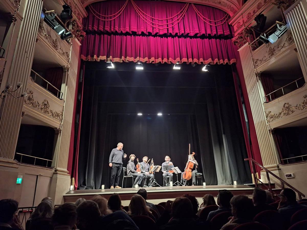 Concerto XENIA NEXT GENERATION SERIES. Incontri musicali con i giovani interpreti della musica da camera al Teatro NiccoliniUn invito ad un appuntamento speciale come dice la Signora Susanna di Firenzeonstage.Leggo il messaggio compiaciuta ed attendo di partecipare in compagnia di un paio di amiche con le quali condivido la passione per la musica da camera alla rassegna XENIA – Next Generation Series presso l’oramai familiare Teatro Niccolini.Il progetto è innovativo e di respiro internazionale. Contempla l’esecuzione di grandi opere da parte di giovani musicisti, che riunitisi per una settimana condivisa di studio, riscoprono la partitura assieme interpretandola al pubblico, preceduti da un’introduzione sottoforma di racconto, di Igor Polesitsky.L’obiettivo è quello di sensibilizzare e diffondere la cultura della musica attraverso concerti, scoprendo in dialogo con il pubblico, dettagli degli interpreti ancora sconosciuti. Nel programma di stasera, Haydn ed il suo Quartetto op. 20 n. 2 vanta le origini del linguaggio cameristico moderno tra dolcezza e melodia e il Quintetto op. 111 di Brahms, è un capolavoro raffinato che esprime la gioia tra le note, subendo piacevolmente influenze popolari come quelle ungheresi. Il dialogo degli strumenti attraverso le interpretazioni dei talentuosi artisti si integra con quello della Prima Viola dell’Orchestra del Maggio Musicale Fiorentino, trovando pieno riscontro tra i partecipanti all’esperimento. Le considerazioni a fine spettacolo sono unanimi. Usciamo tutti deliziati e soddisfatti dell’organizzazione della serata.