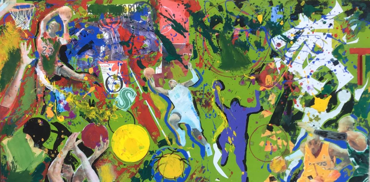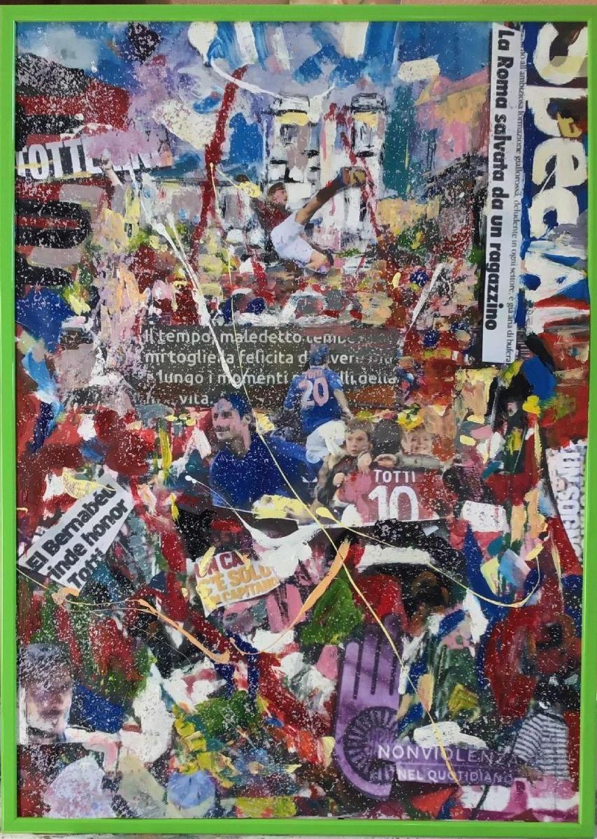 Opere di tecnica mista - collage - digital art esposte nel salone delle fiaccole del Comitato Olimpico Nazionale Italiano, in occasione del premio Andrea Fortunato 2019
