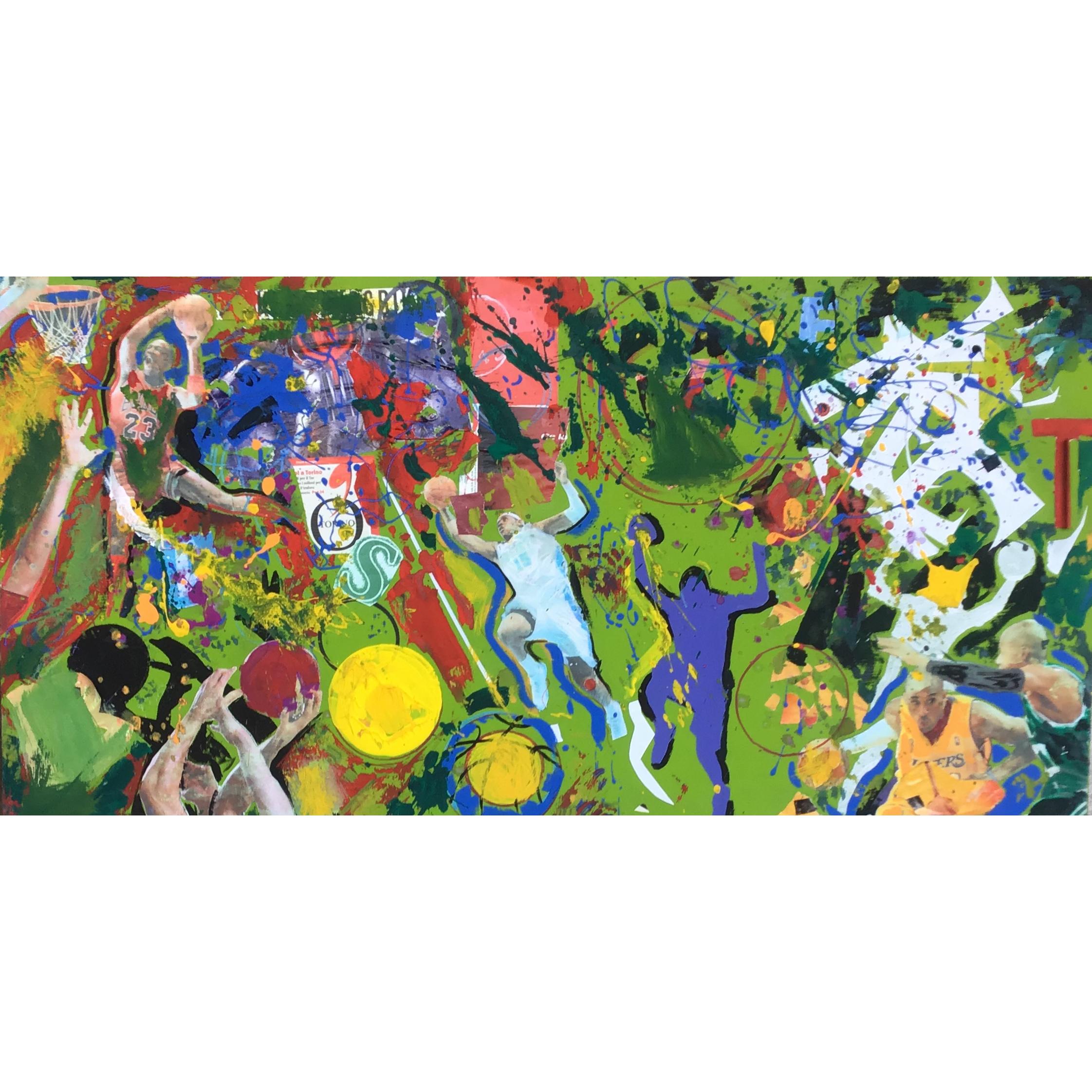 opera di pittura acrilica, smalto e quarzo con collage e fotoritocco su tela a tema sportivo, presentata alla sala delle fiaccole del Comitato Olimpico Nazionale Italiano in occasione del Premio Andrea Fortunato 2019