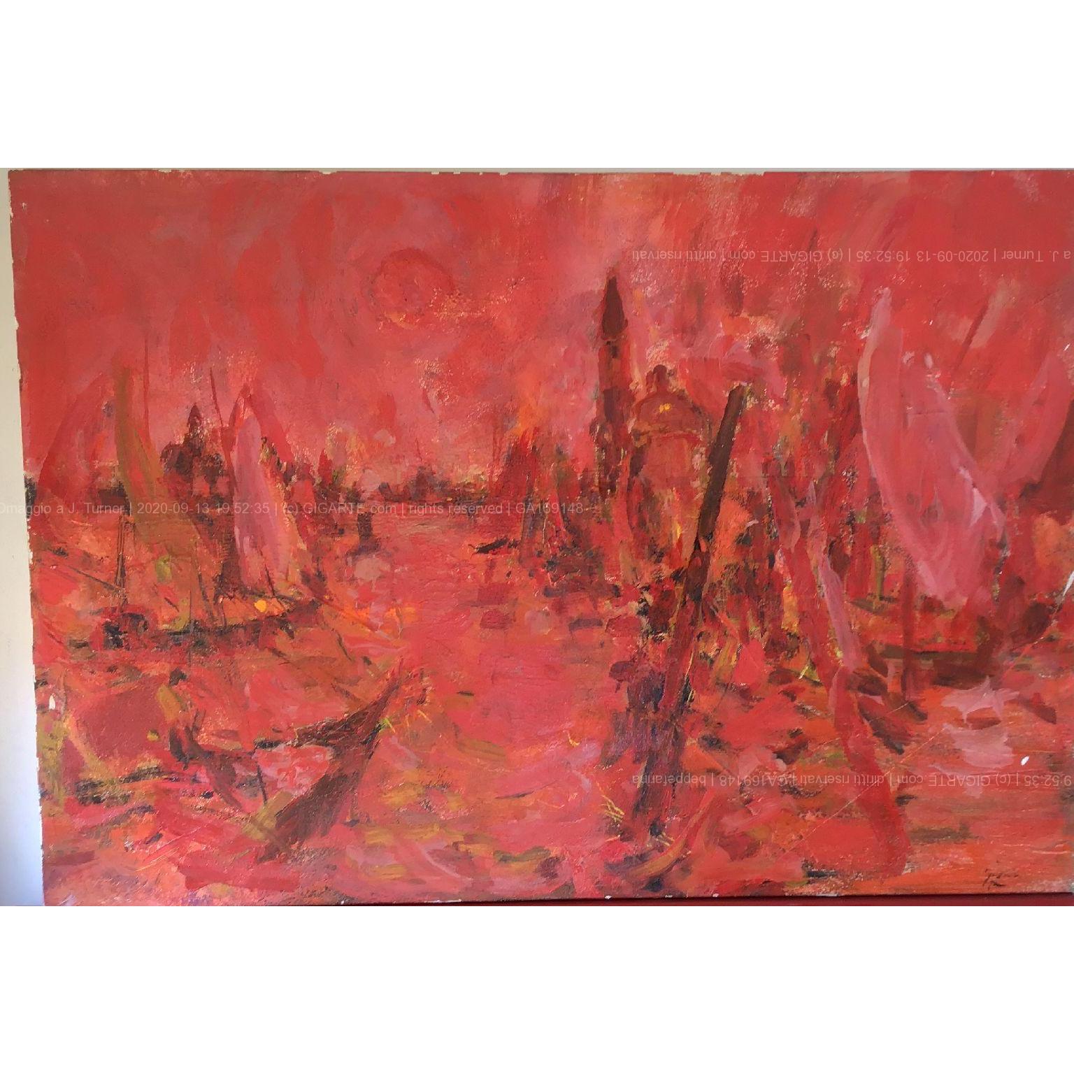 Opera impressionistica raffigurante Venezia con predominanza di rossi
