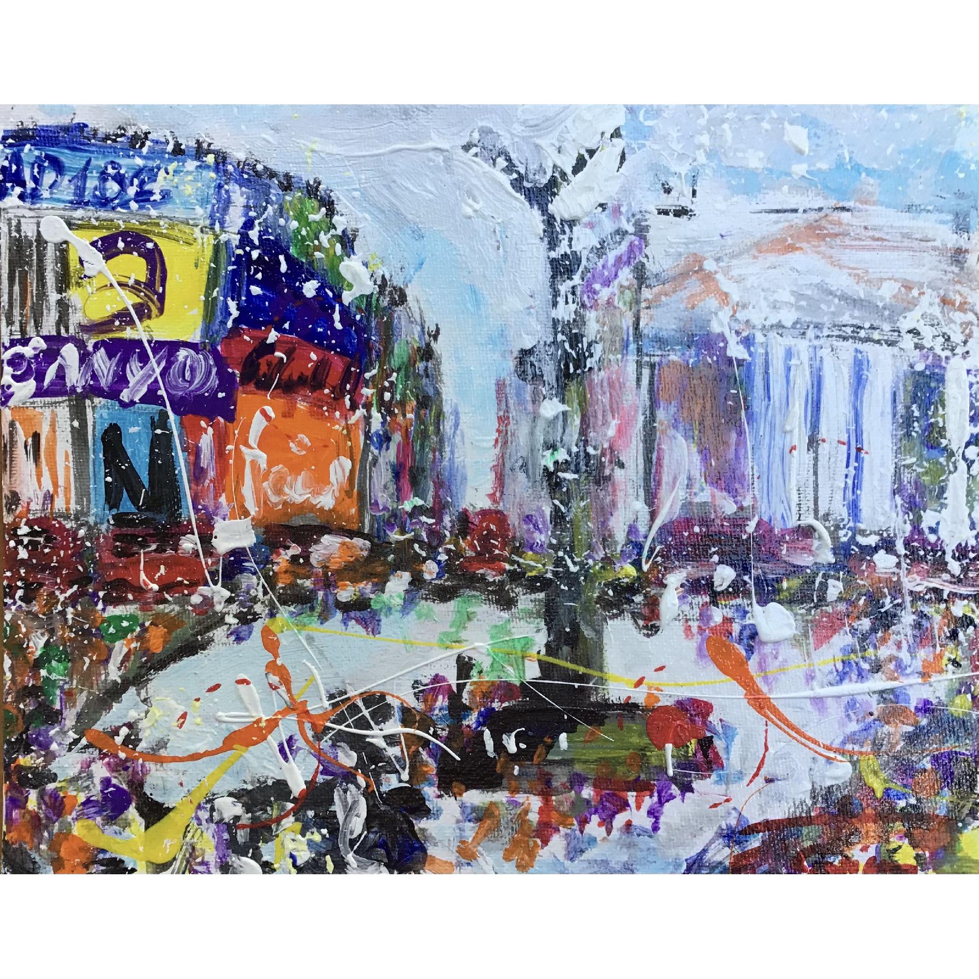 Opera tradizionale raffigurante uno scorcio di piccadilly circus con dedica a Diego Armando Maradona