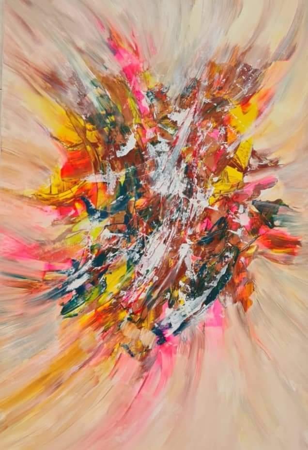 Opera "Carnevale a Venezia"Un’esplosione di colori e movimento che richiama l’energia vibrante del Carnevale veneziano. Le pennellate dinamiche e sovrapposte evocano maschere, luci e coriandoli in una danza caotica ma armoniosa. Il centro luminoso sembra pulsare di vita, mentre i toni caldi e accesi trasmettono festa, mistero e teatralità tipici di Venezia durante il Carnevale.