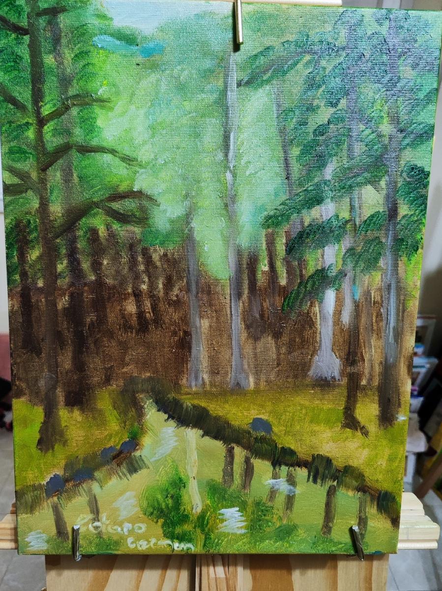 E un bel bosco con ruscello, che ho visto in una delle mie uscite, e dipinto alla 1 in impressionismo, ho fatto un tracciato del luogo e lo riprendo in studio, si prestava ad essere dipinto,