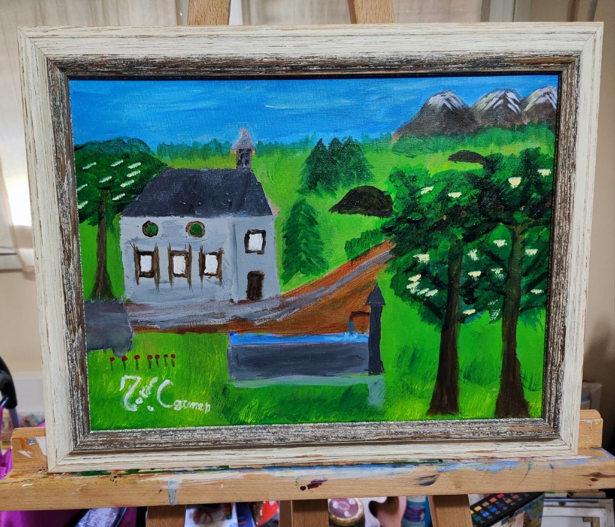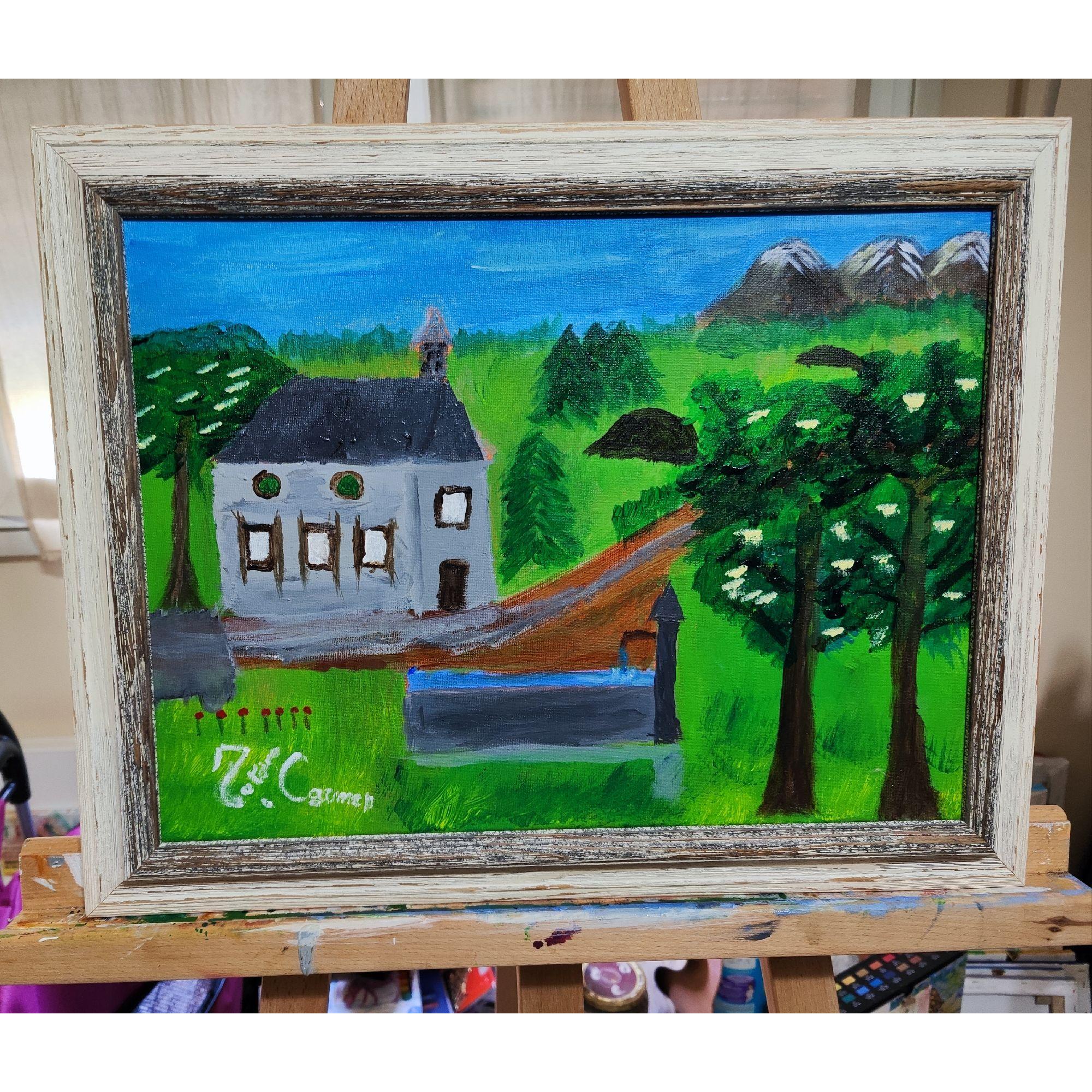 Il dipinto rappresenta un mio vecchio ricordo, di quando si facevano le gite in montagna, rappresenta un baita alpina, con brunè, in queste baite si preparava la polenta, questa è a una quota bassa sui 1300 metri