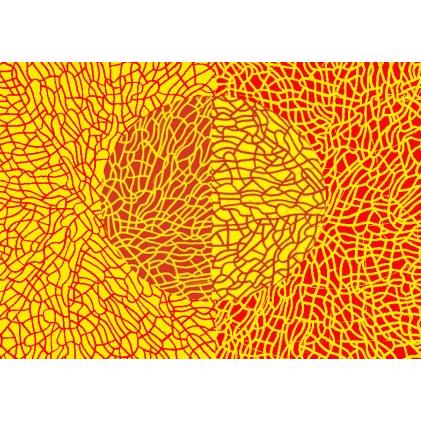 l'intreccio di fili gialli e rossi crea l'inpressione di un gomitolo.