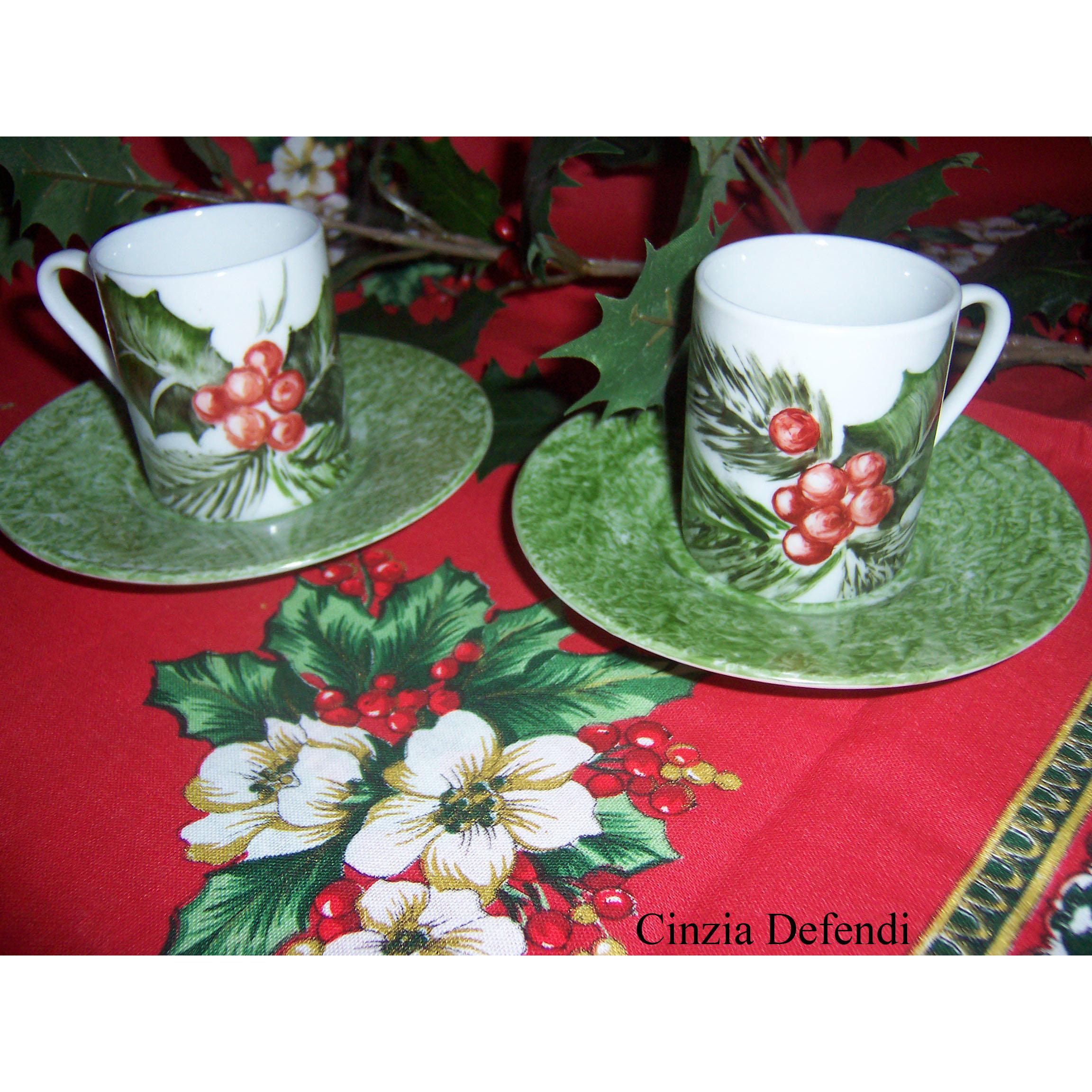 Per questo servizio da caffè ho scelto il Tema "Agrifoglio"(ilex aquifolium), pianta caratteristica del Natale.