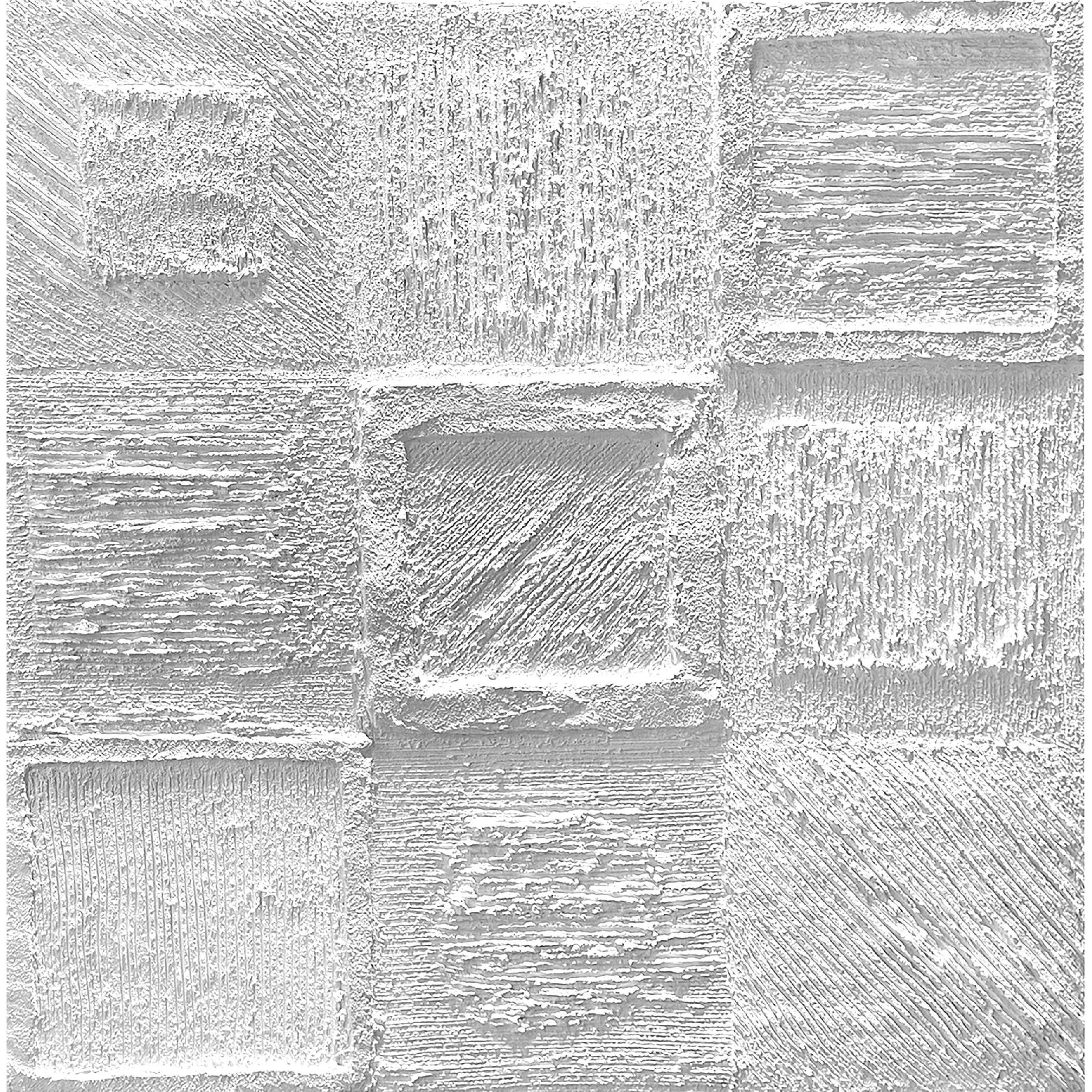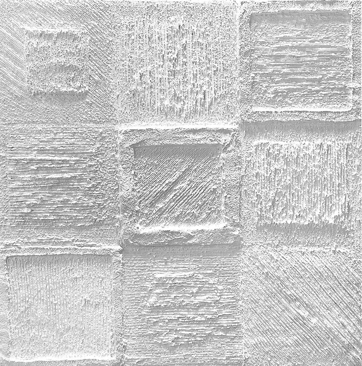 L’opera White square è nata dall’idea di creare un dipinto senza tempo. La tela quadrata è suddivisa in nove rispettivi riquadri molto materici, uno diverso dall’altro, per creare una trama con effetti di pieni e vuoti. Quadrato su quadrato, quadrato su cerchio o solamente righe che all’interno dello spazio dedicato, diventano più profonde dando vita a un gioco (tris) con un chiaroscuro di sicuro 'effetto. I tre riquadri più in rilievo hanno spessori volutamente differenti con una colorazione di un leggero bianco-perla. Ho esplorato la semplicità, la serenità e l'equilibrio attraverso forme minimaliste e textures graffianti. Le superfici tattili invitano alla riflessione e all'introspezione. È un invito a contemplare la pace interiore che ciascuna persona può scoprire nel proprio nucleo silenzioso portando un soffio di calma e una sensazione di spazio aperto.