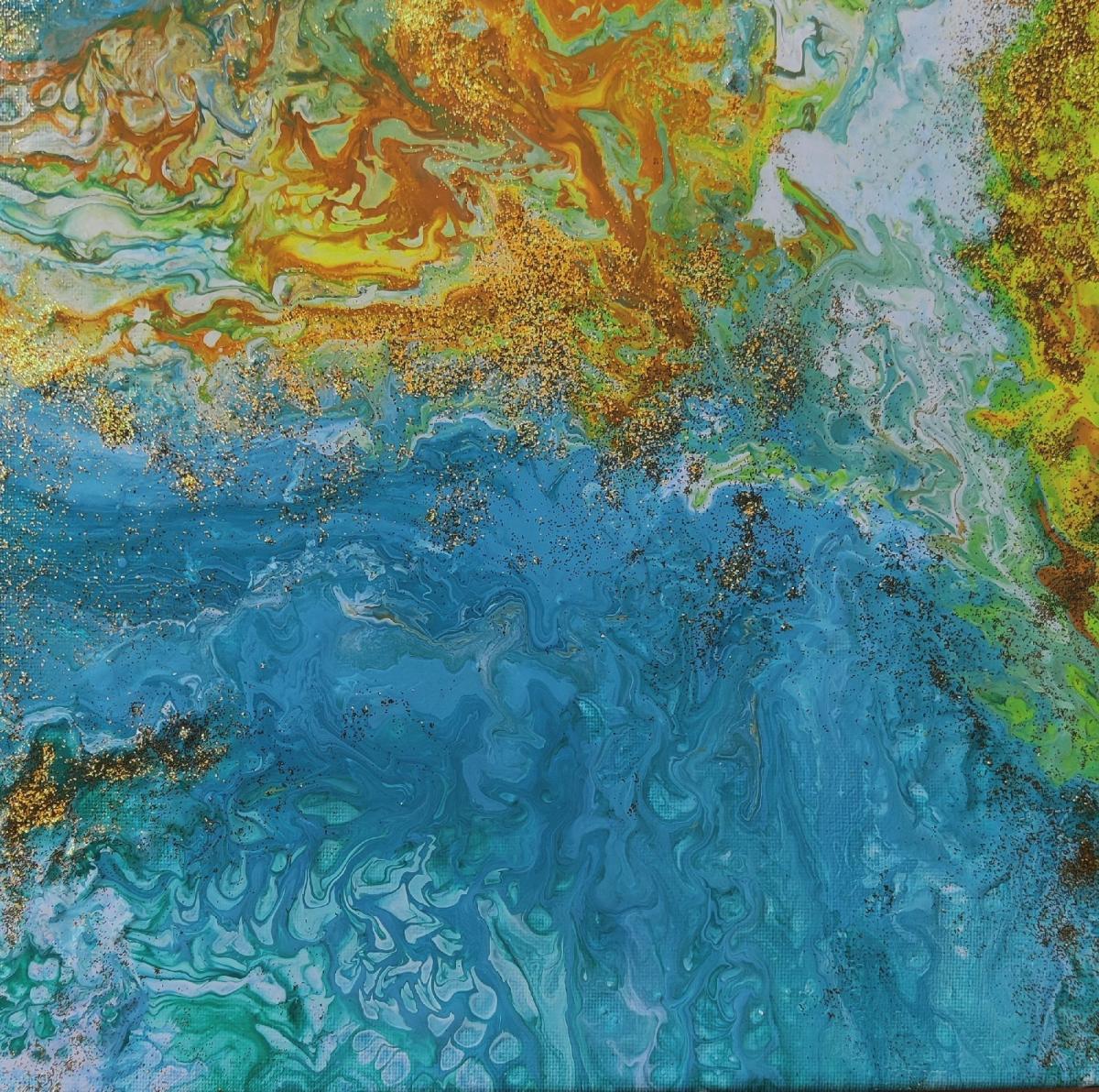 dalla serie "Oceano": "Terramare" acrilico su tela 30x30 May 2022 "Terramare" laddove una cosa finisce un'altra nasce il continuo mutare l'allontanarsi per poi ritrovarsi essere spettatore distratto del placido fluire degli eventi ed esserne inconsapevolmente travolti.... è questo il mutevole gioco della vita! laddove una cosa finisce un'altra nasce (Claudia P.) "Terramare" where one thing ends another is born the constant change to go away and then find oneself again to be a distracted spectator of the placid flow of events and being unknowingly overwhelmed .... and this the ever-changing game of life! where one thing ends another is born