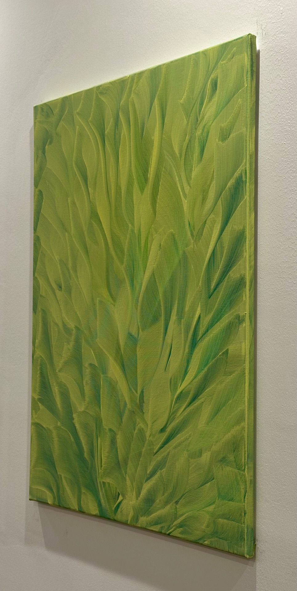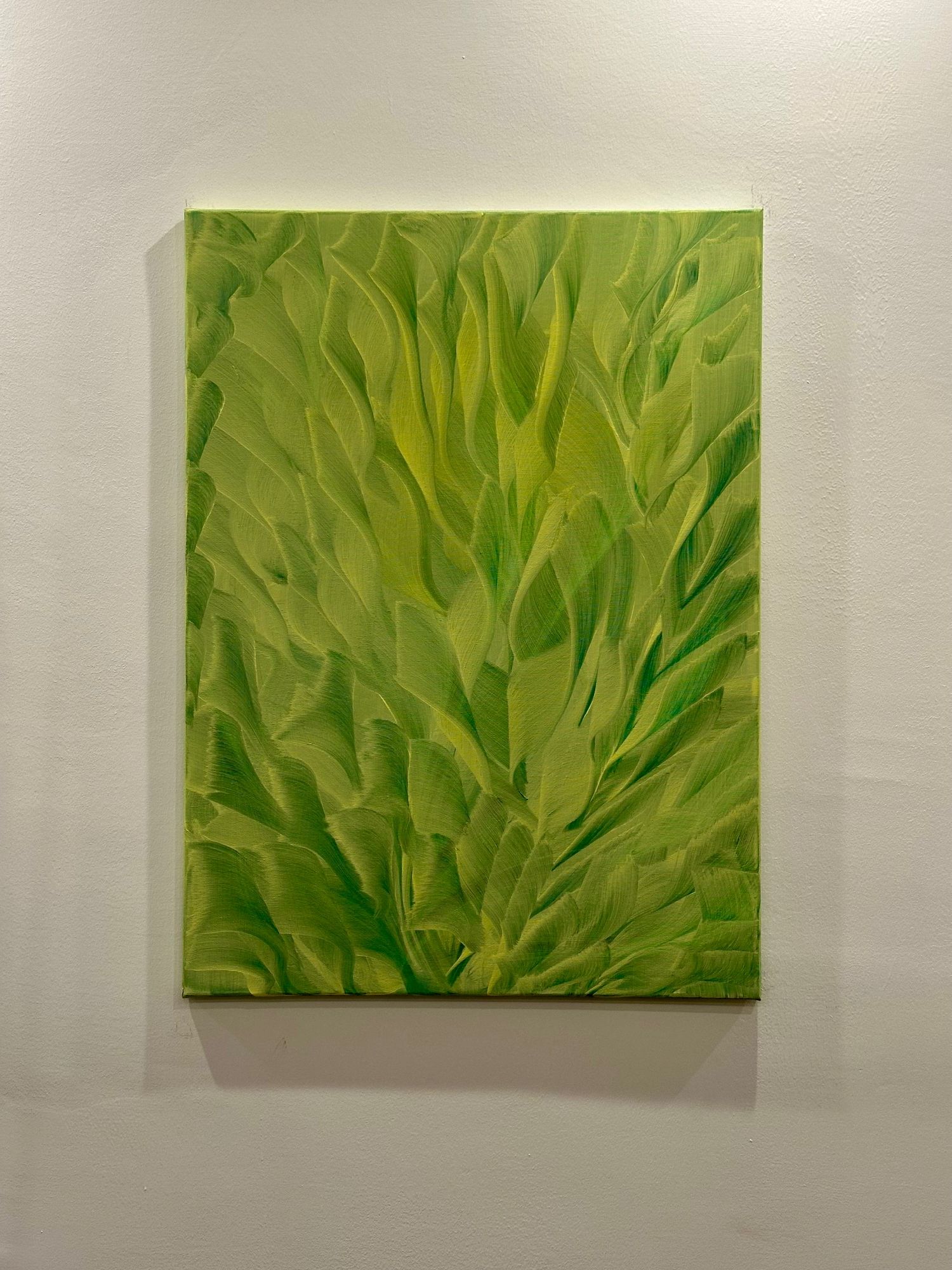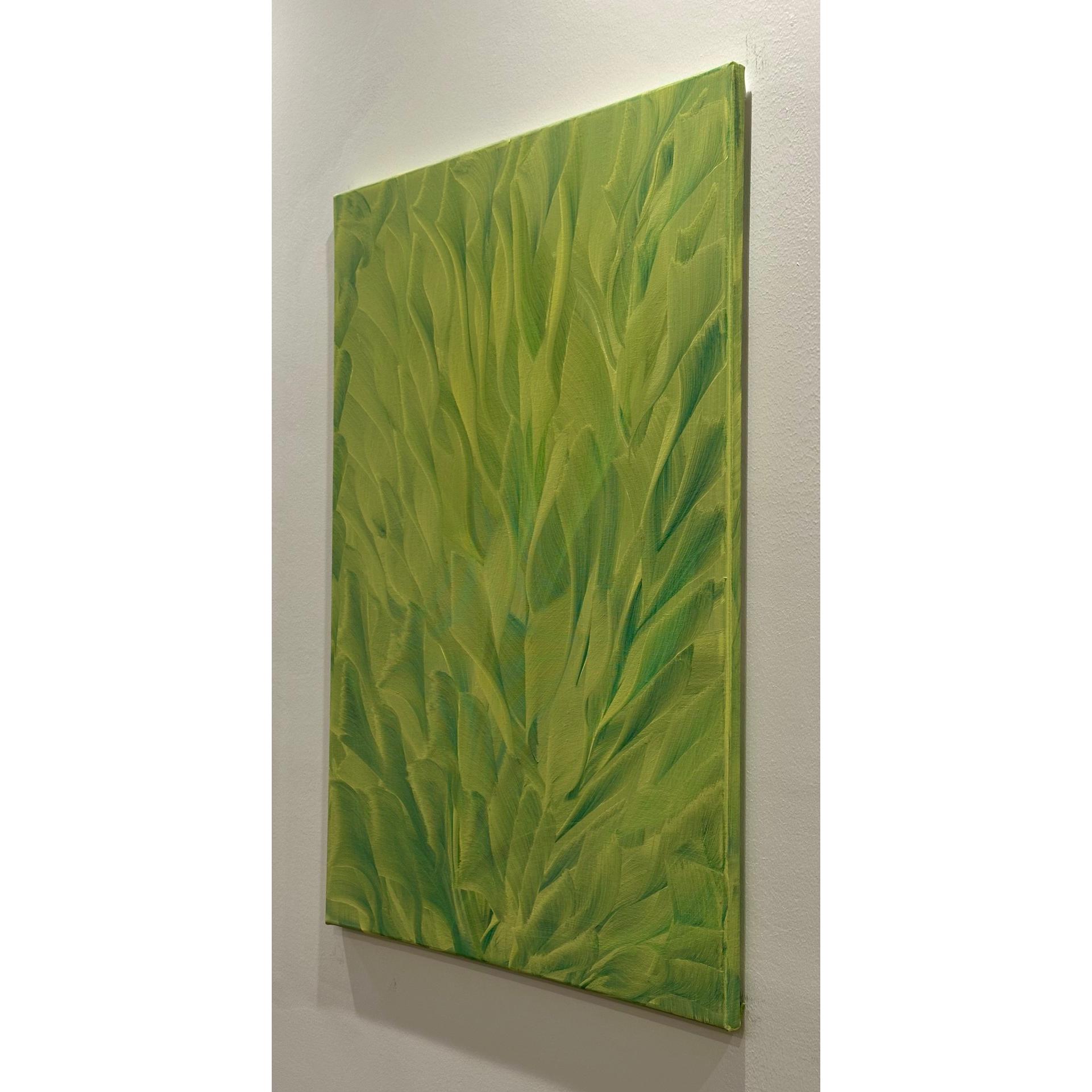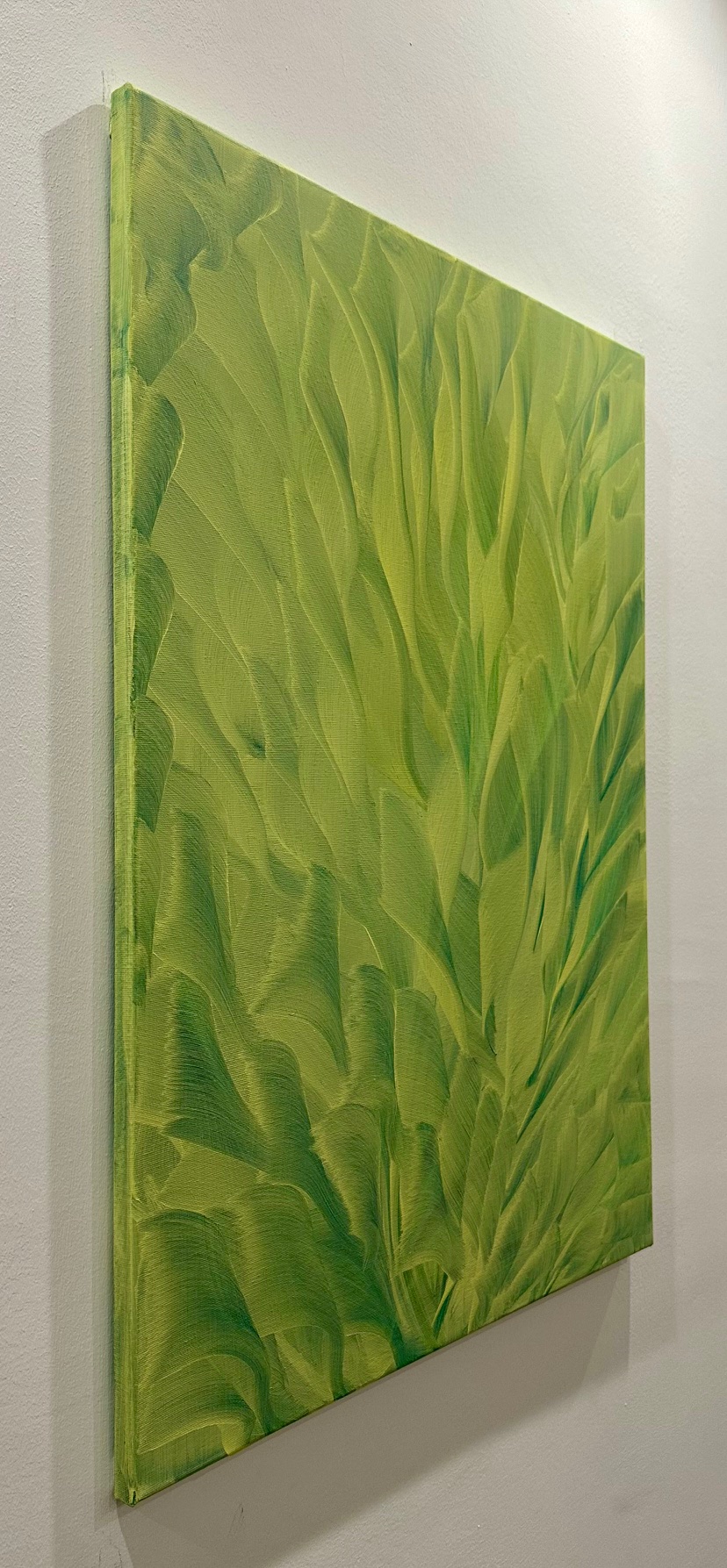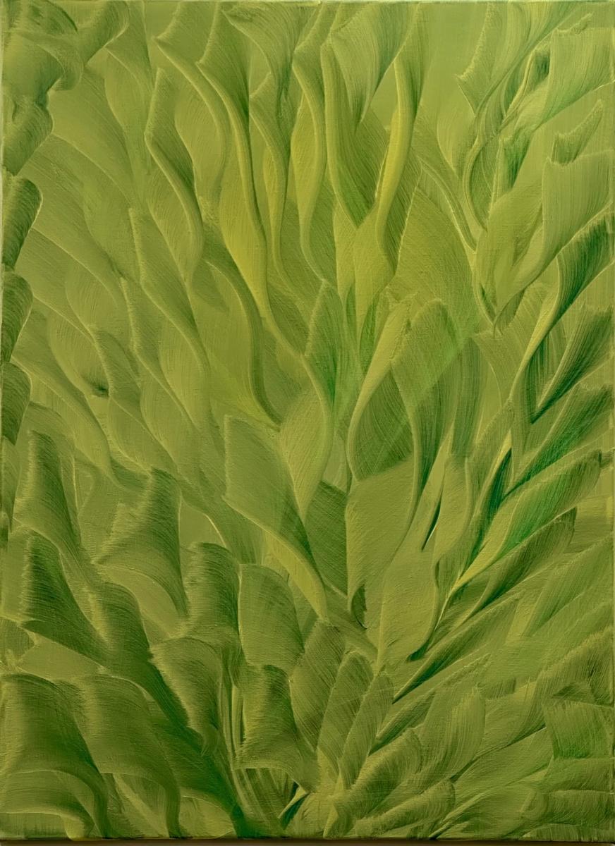 La superficie della tela trattiene il ritmo del movimento, trasformando il colore in materia viva. Le pennellate si sovrappongono come foglie, vene, correnti vitali, suggerendo un paesaggio interiore più che reale, un luogo della percezione e del respiro.