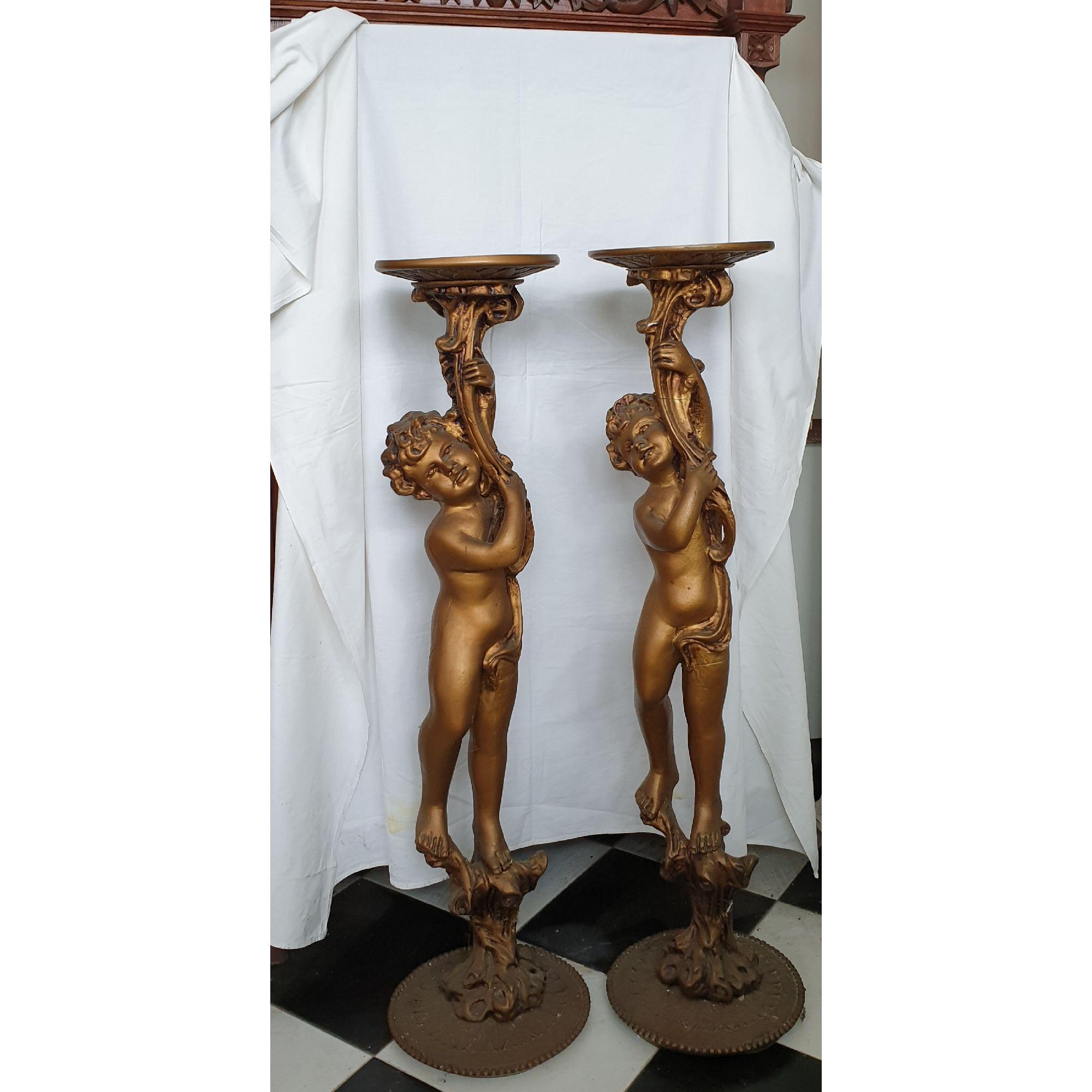 COPPIA DI PUTTI IN STUCCO DECORATI