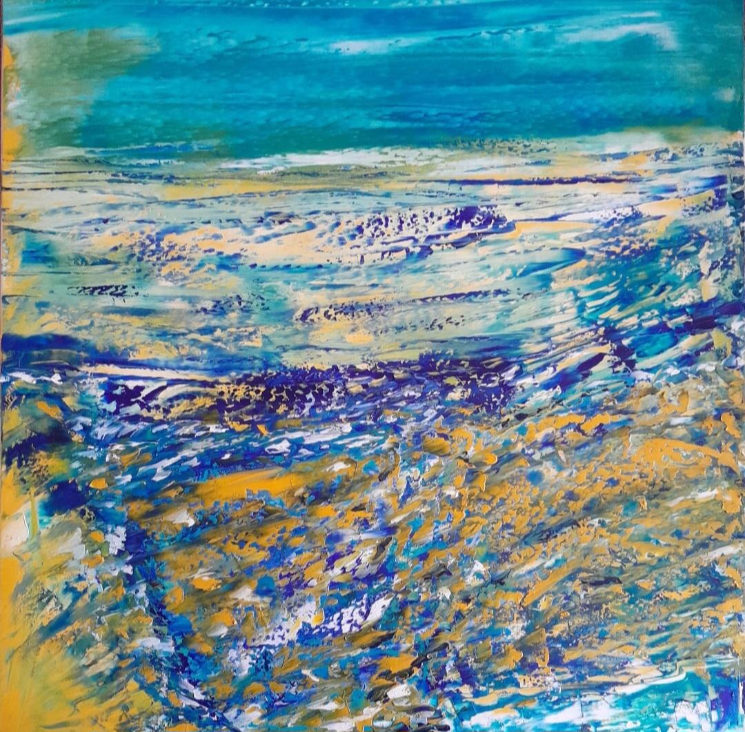 Olio su tela 50 x 50 più cornice americana Tecnica a spatola Titolo paesaggio