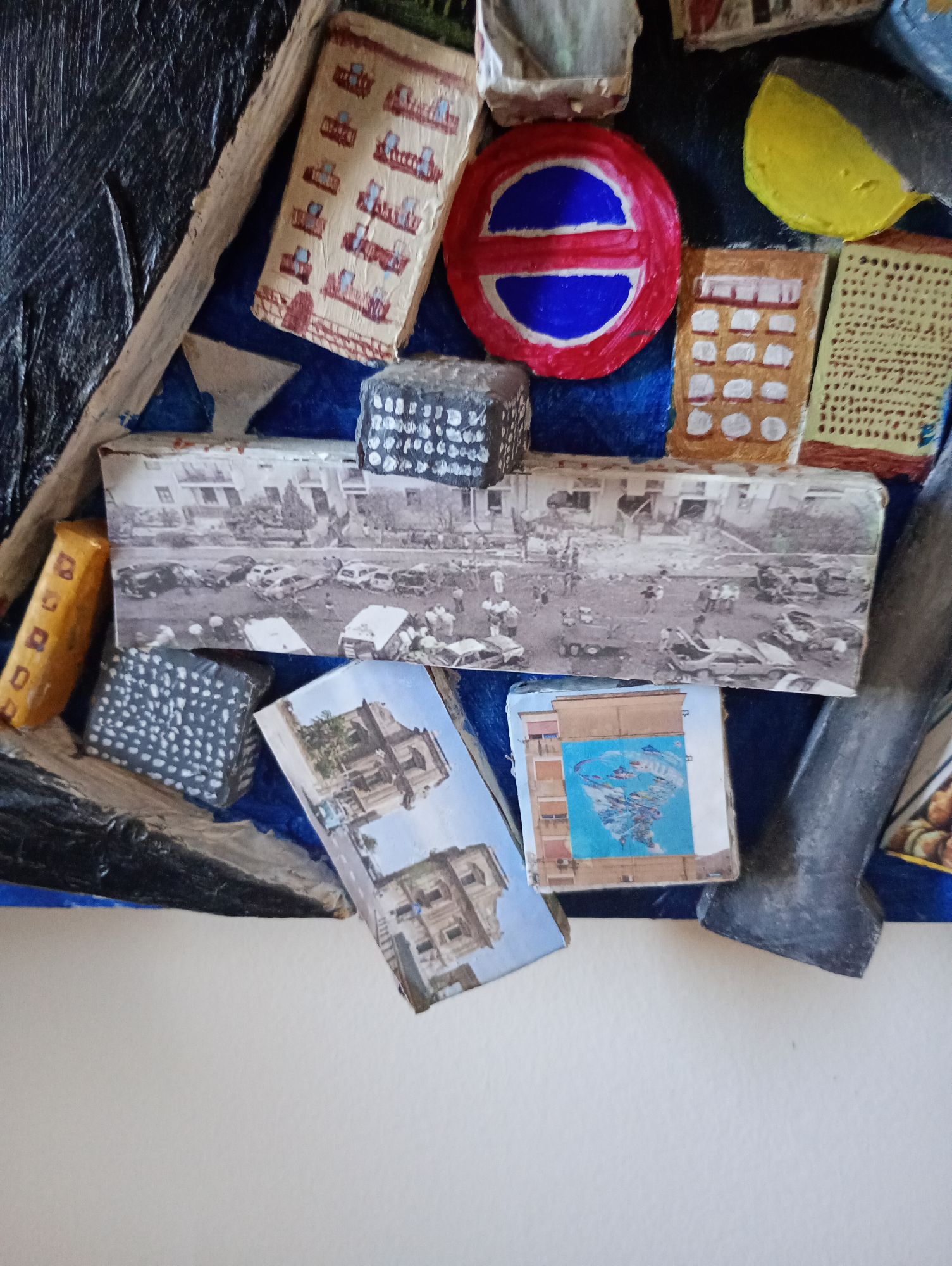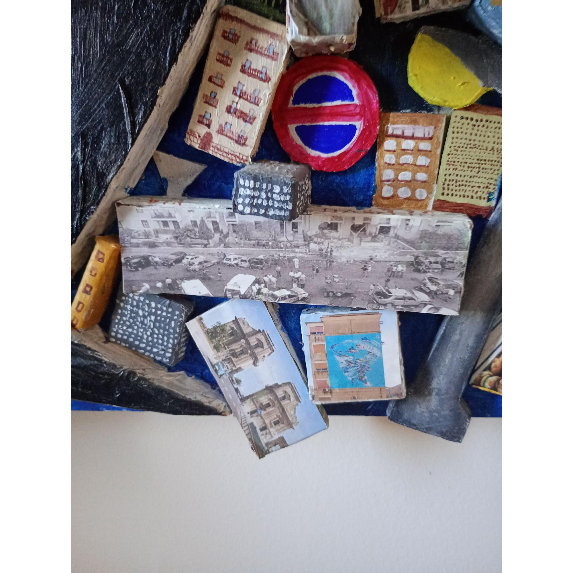 Opera dedicata a Peppino impastato. L'opera vuole raccontare alcune sfaccettature di Palermo attraverso le immagini e frasi scritte negli angoli nascosti del quadro non visibili dalla foto frontale ,per vedere l'opera si deve interagire con essa girare attorno ad essa per scoprire cosa si nasconde nei vicoli.