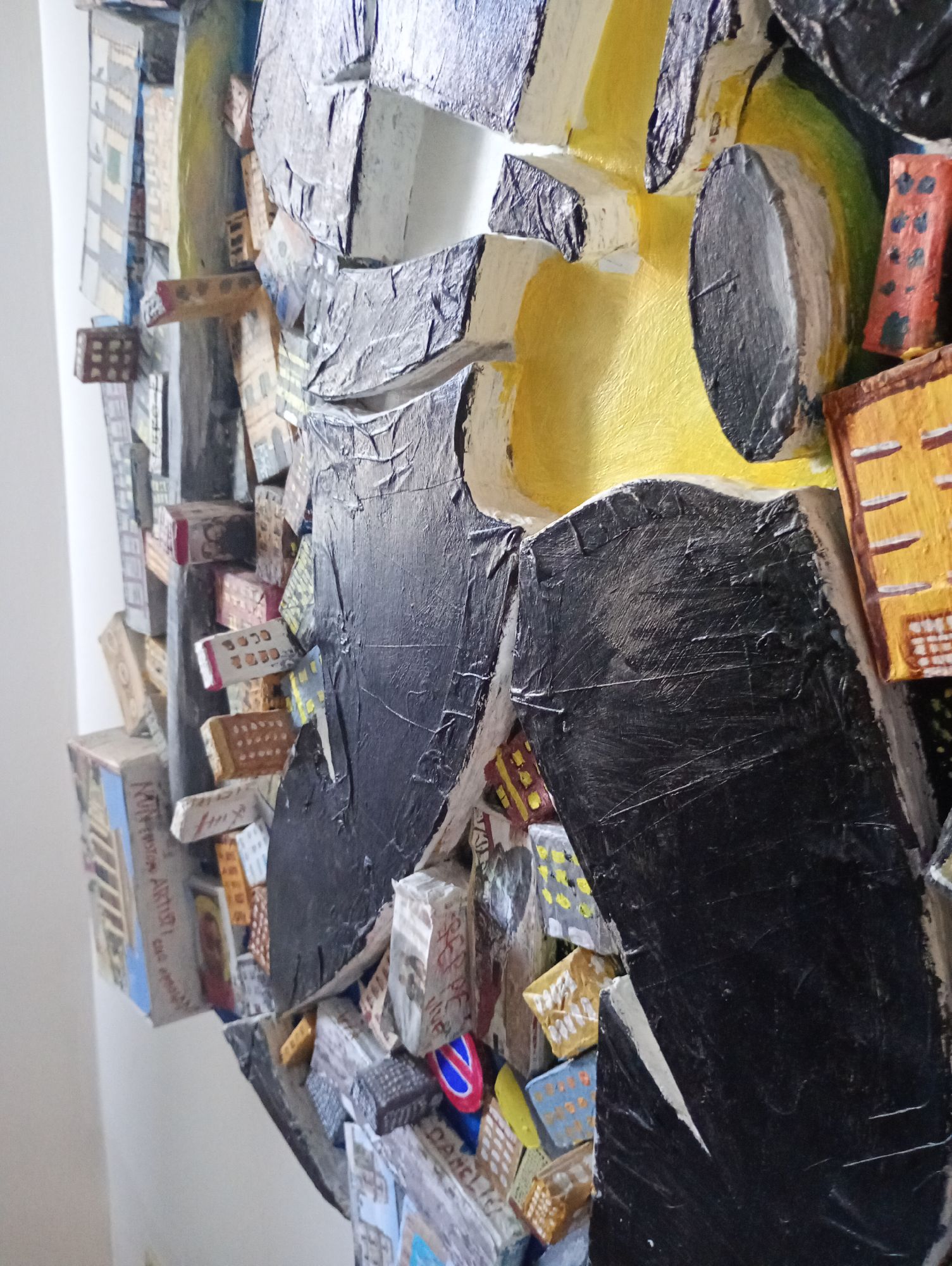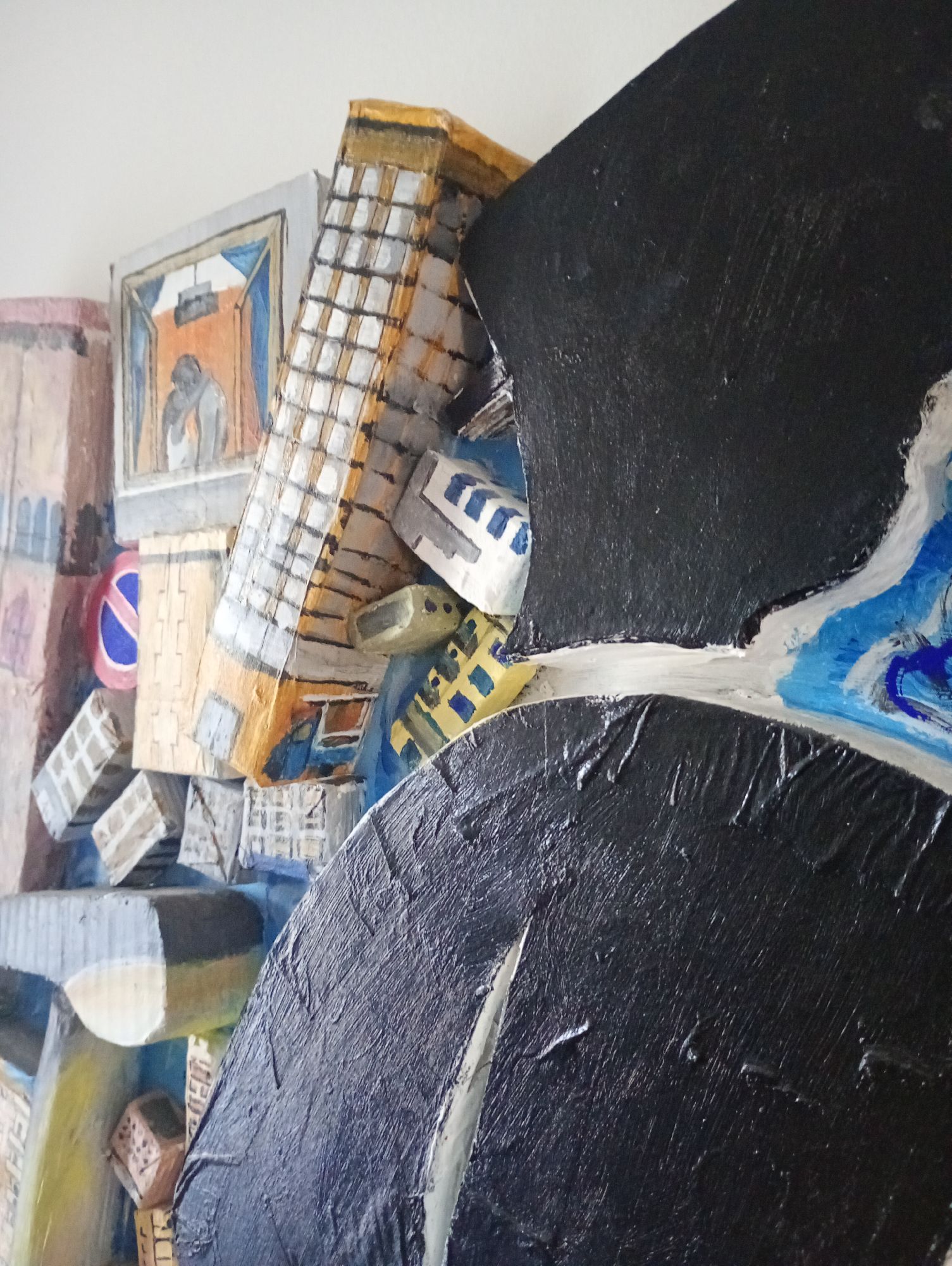 Tecnica mista, Cartone riciclato dipinto a mano incollato su tela, 2016