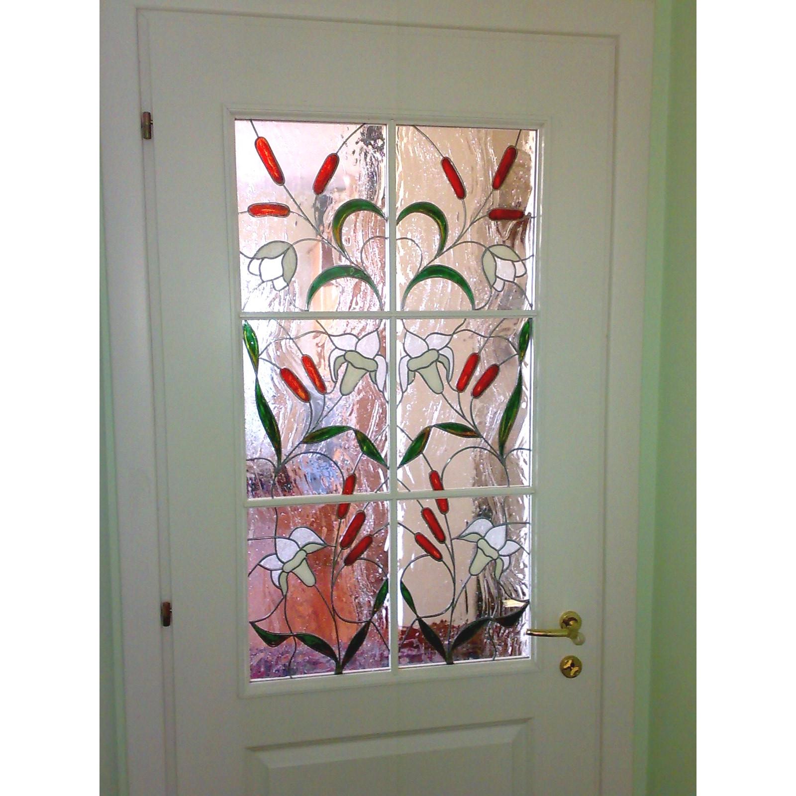 Porta vetro interna decorata con nastro di piombo adesivo e colori per vetro trasparenti