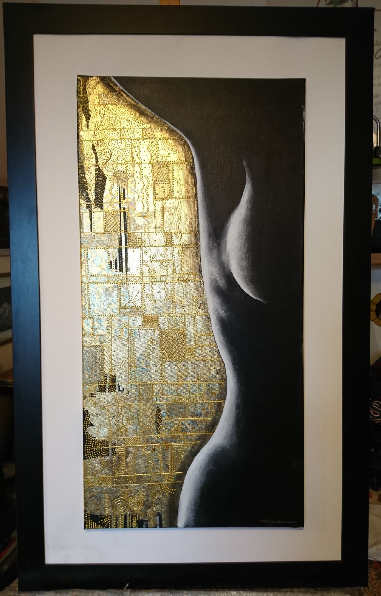 Colori acrilici, foglia oro e pasta a rilievo