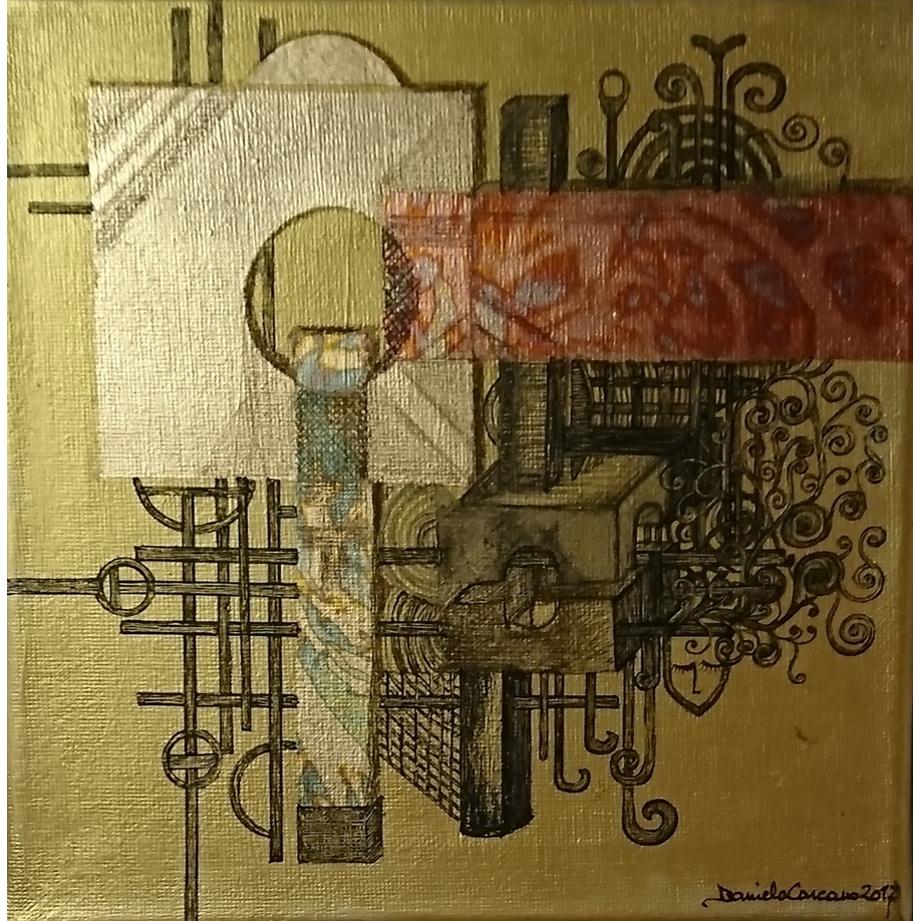 Inchiostro, foglia oro e rame
