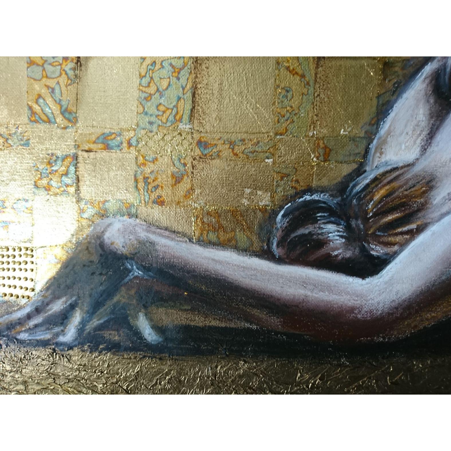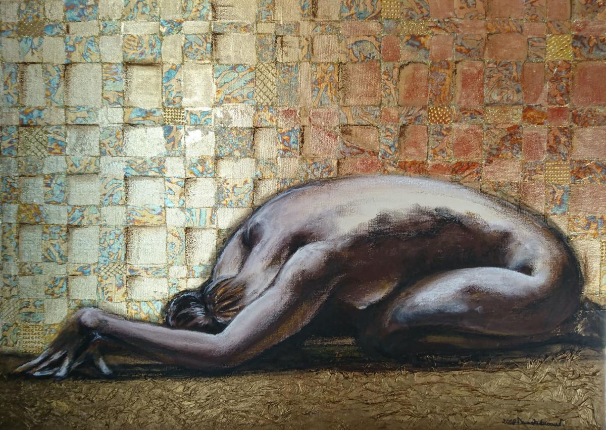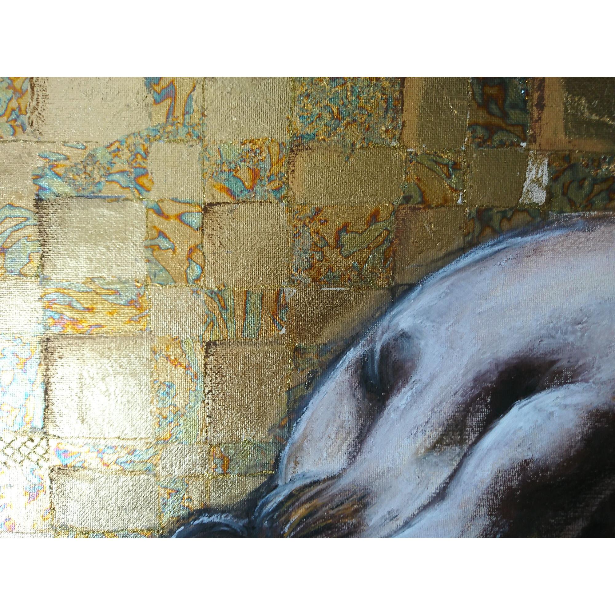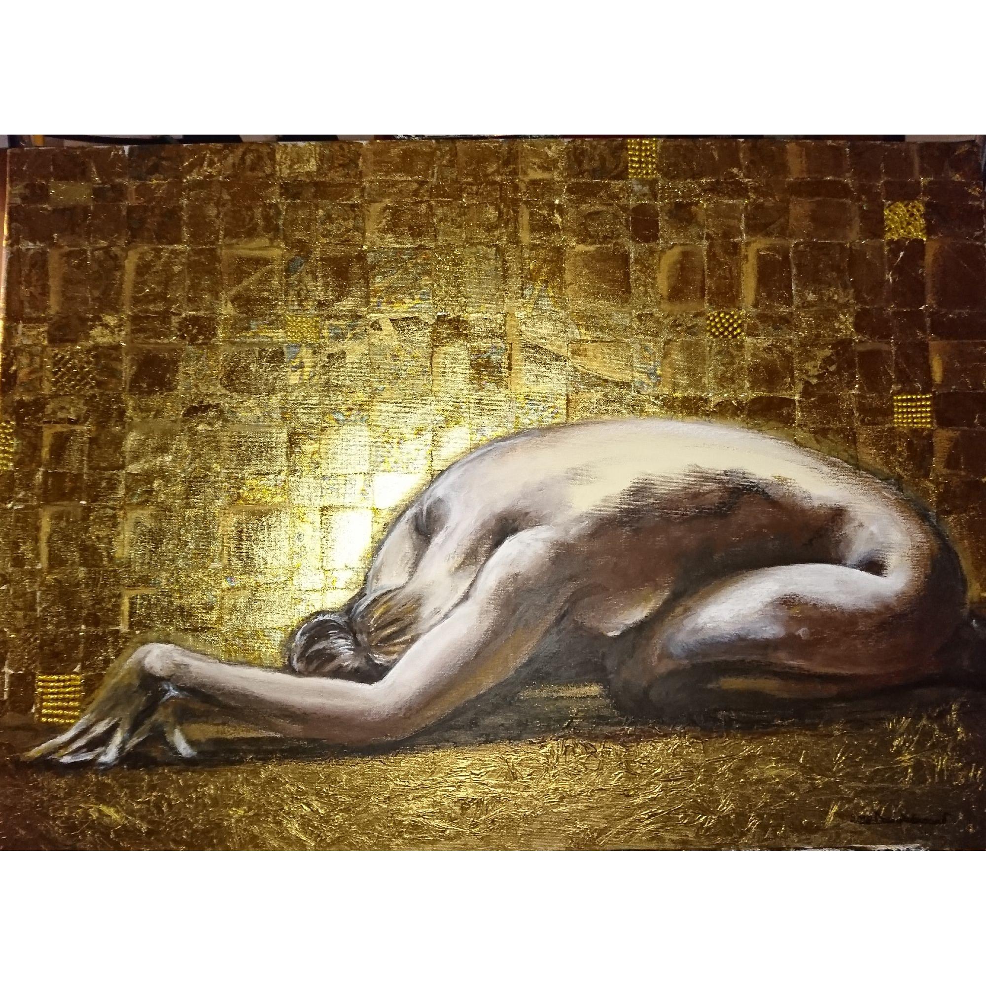 - Materiale:: Pastelli ad olio, foglia oro e variegata, colori acrilici