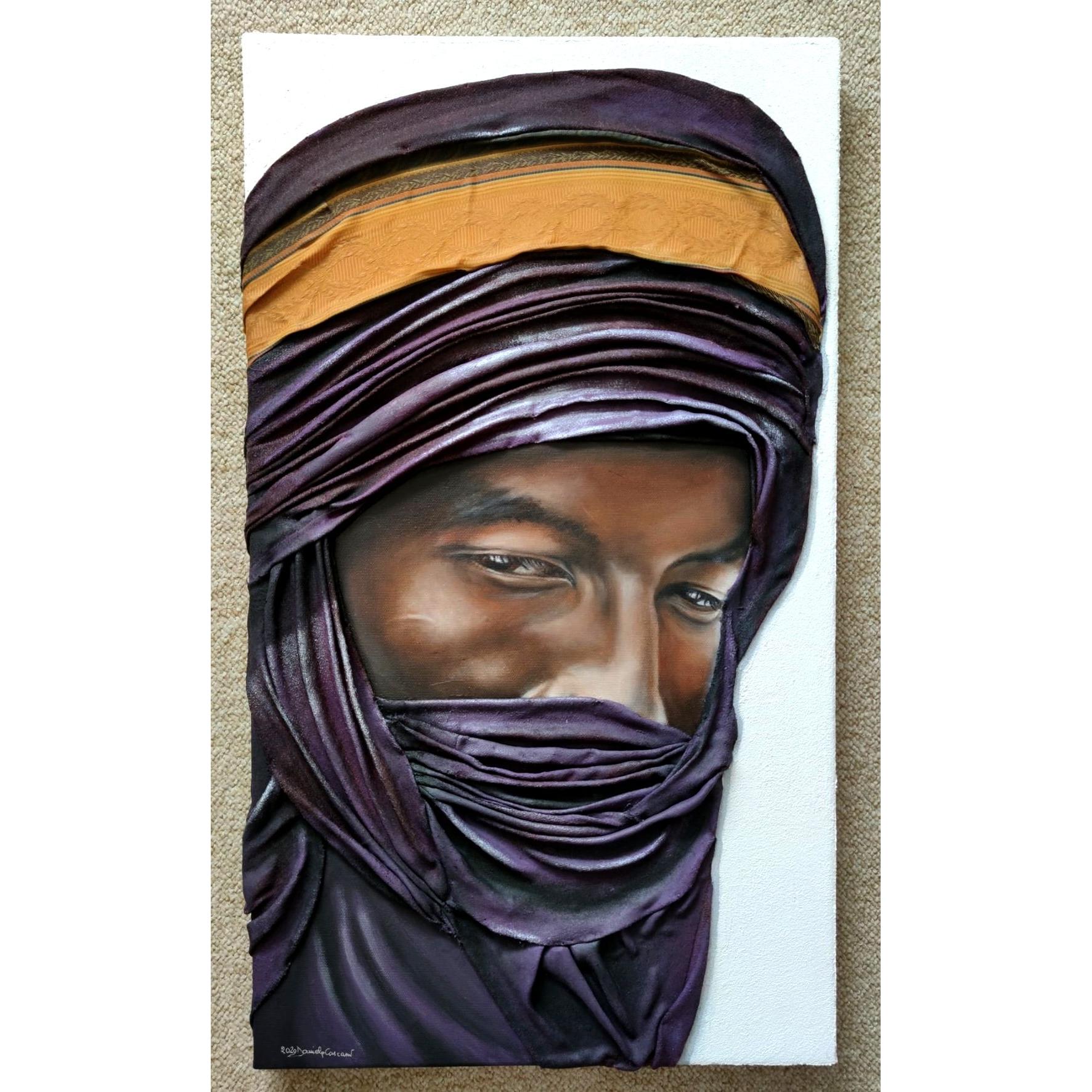 - TECNICA: Colori ad olio, tessuto pashmina