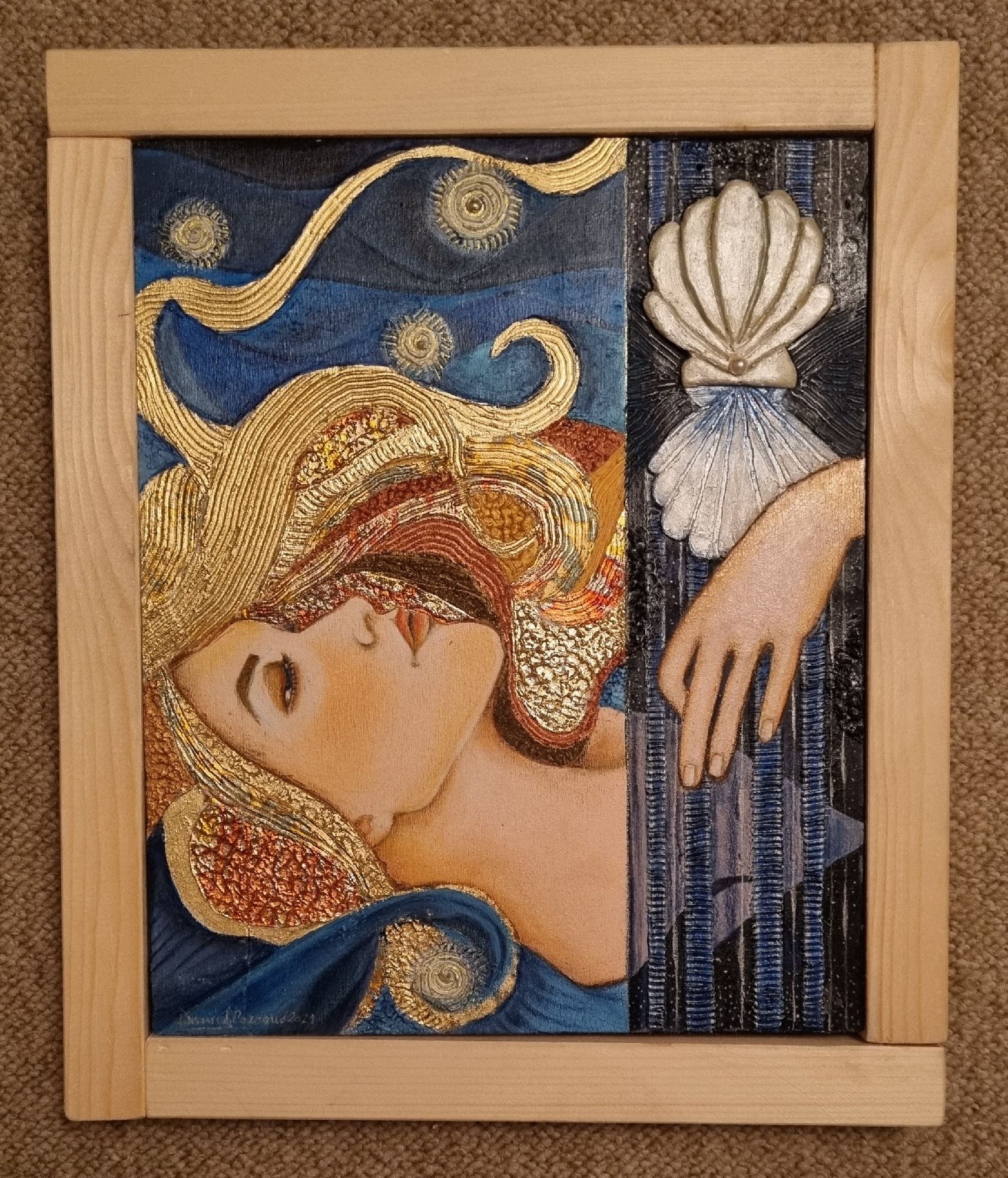 - Tecnica: Colori acrilici, foglia oro, pasta modellabile