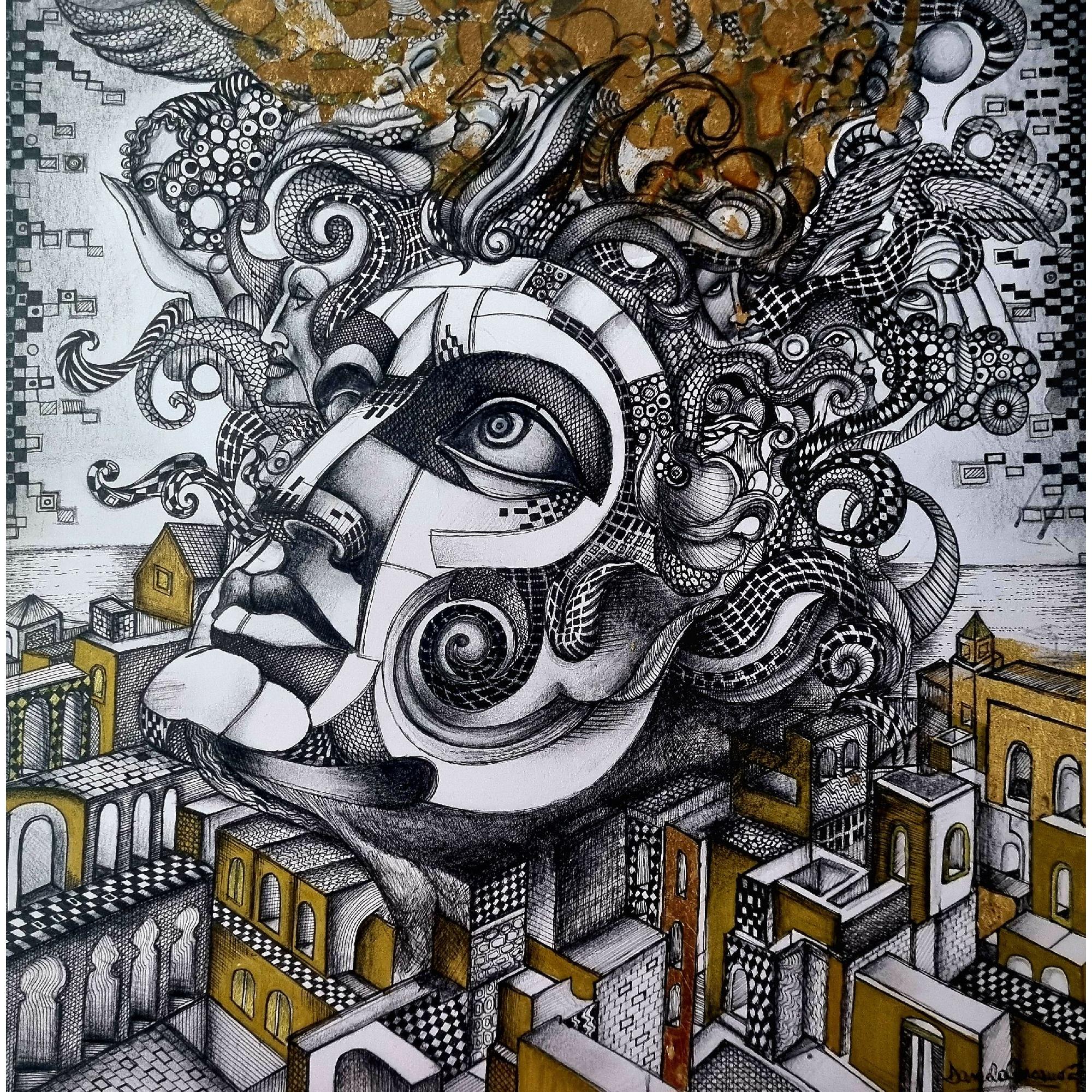 - Tecnica: Inchiostro, foglia oro, acrilici