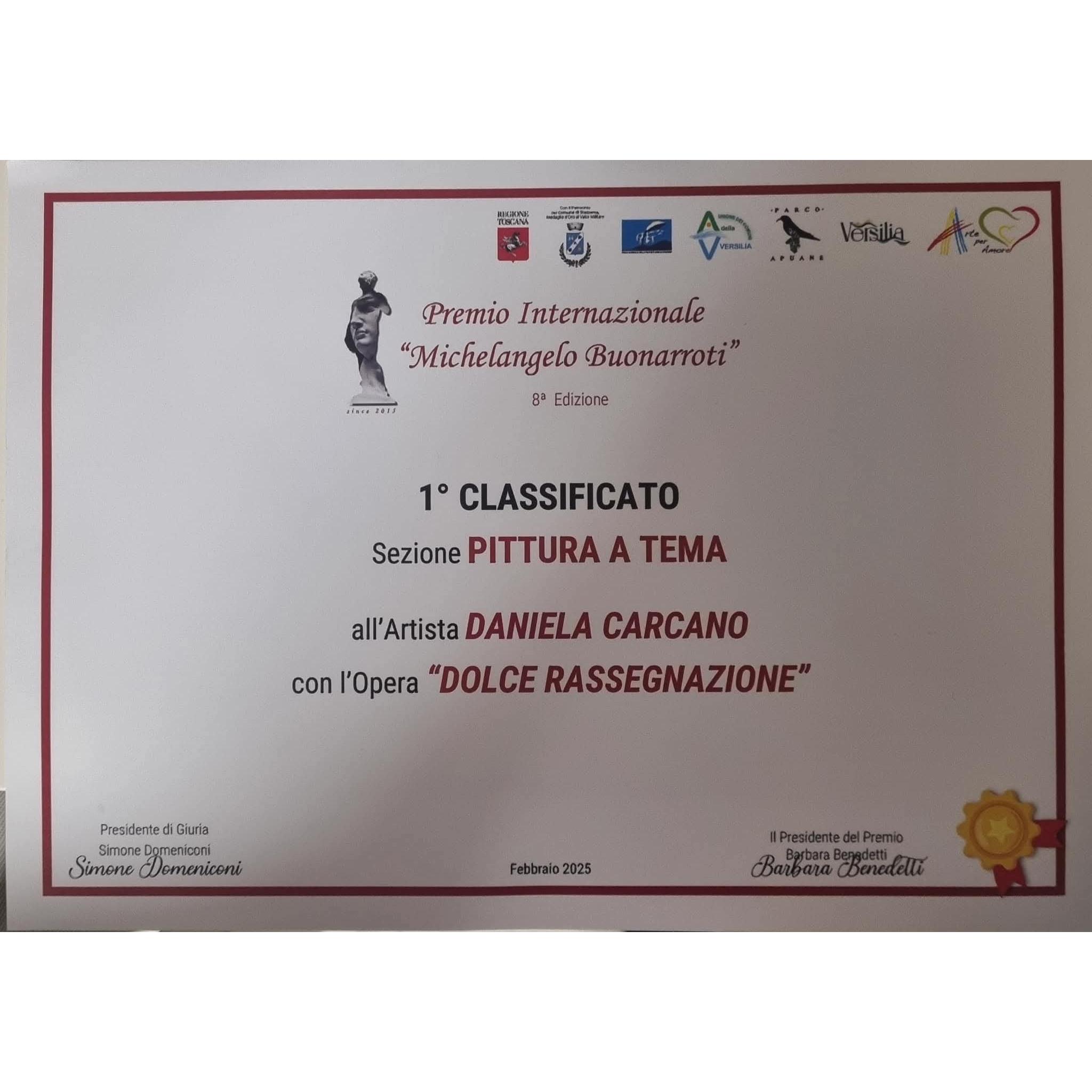 Questo quadro ha ricevuto il 1^ premio nella categoria di Pittura a Tema nell'ambito del Premio Internazionale Michelangelo Buonarroti, Stazzema (LU) Febbraio 2025