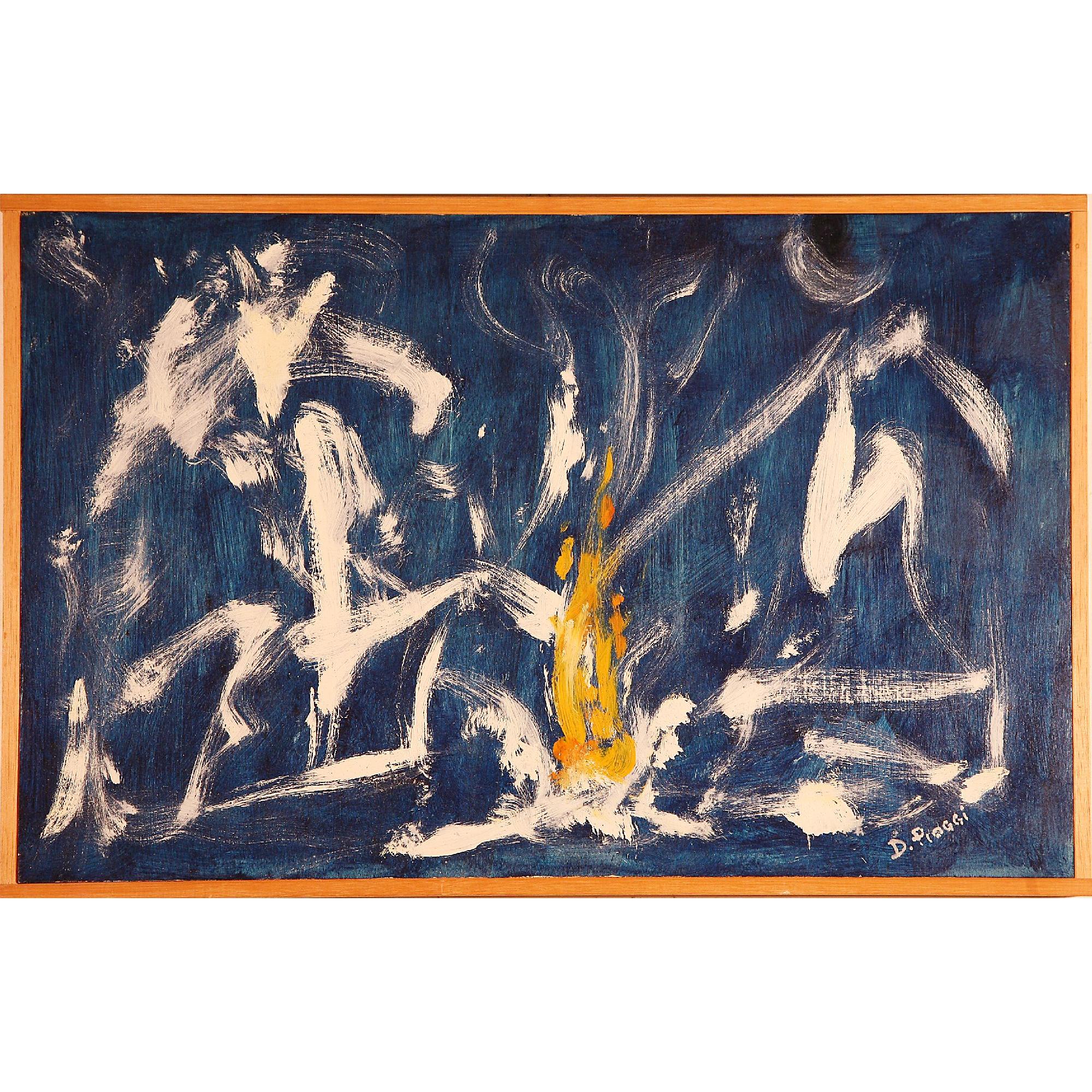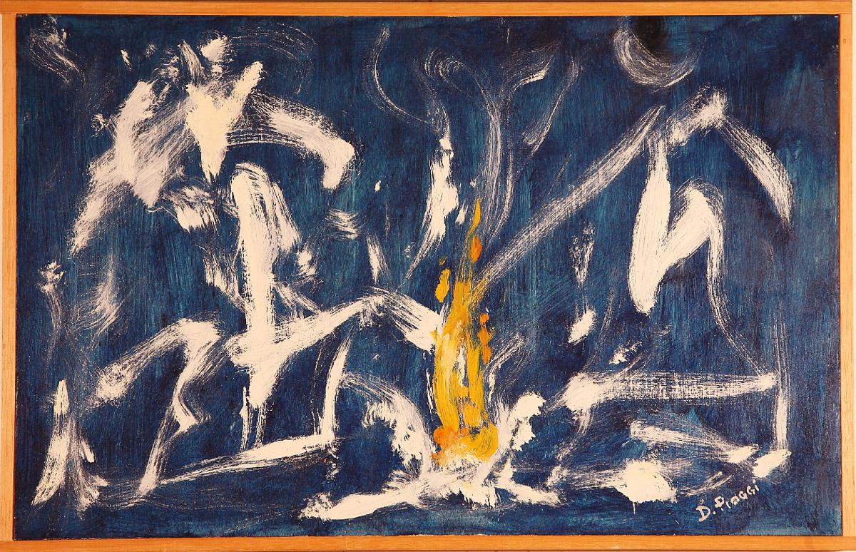 Un Opera che evidenzia diversi Elementi, come per Sentire i messaggi che arrivano quando ci mettiamo in meditazione in ispirazione ascoltando . La gestualità in contrasto di colore blu bianco , rende l'Opera molto meditativa ,con il FUOCO elemento di forza ma anche di Potere della nostra Anima ,dove risiede la nostra Missione nella Terra . l Opera è ispirata alla Crescita Spirituale e radicata in ascolto agli antenati .