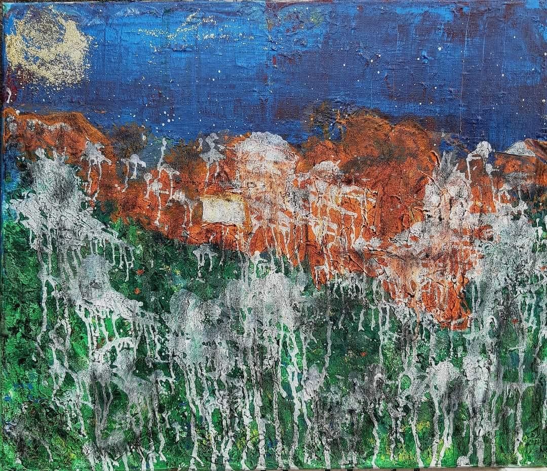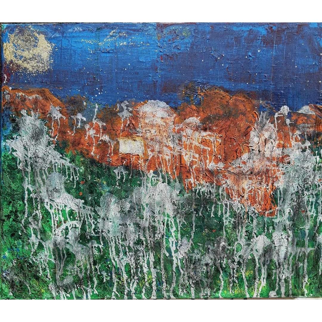 Questo dipinto esprime un viaggio emotivo attraverso colore e texture, usando acrilico, pastello, penna e doratura per catturare la profondità di un paesaggio astratto. Il cielo è tempestoso, ma illuminato da un tocco di oro, simboleggiando speranza e rinascita. Le robuste formazioni rocciose e la vegetazione rigogliosa invitano riflessione e contemplazione, Ideale per portare energia e ispirazione in ogni spazio.Visione di Maggio due Il Tempo dell'incertezza è in continuo battito..Adesso La nota positiva che Trasformerà inizia nel Tuo Mondo Inizia ad Amare il tuo Spazio Interiore..un Nuovo Sole ci aspetta dopo la Tempesta