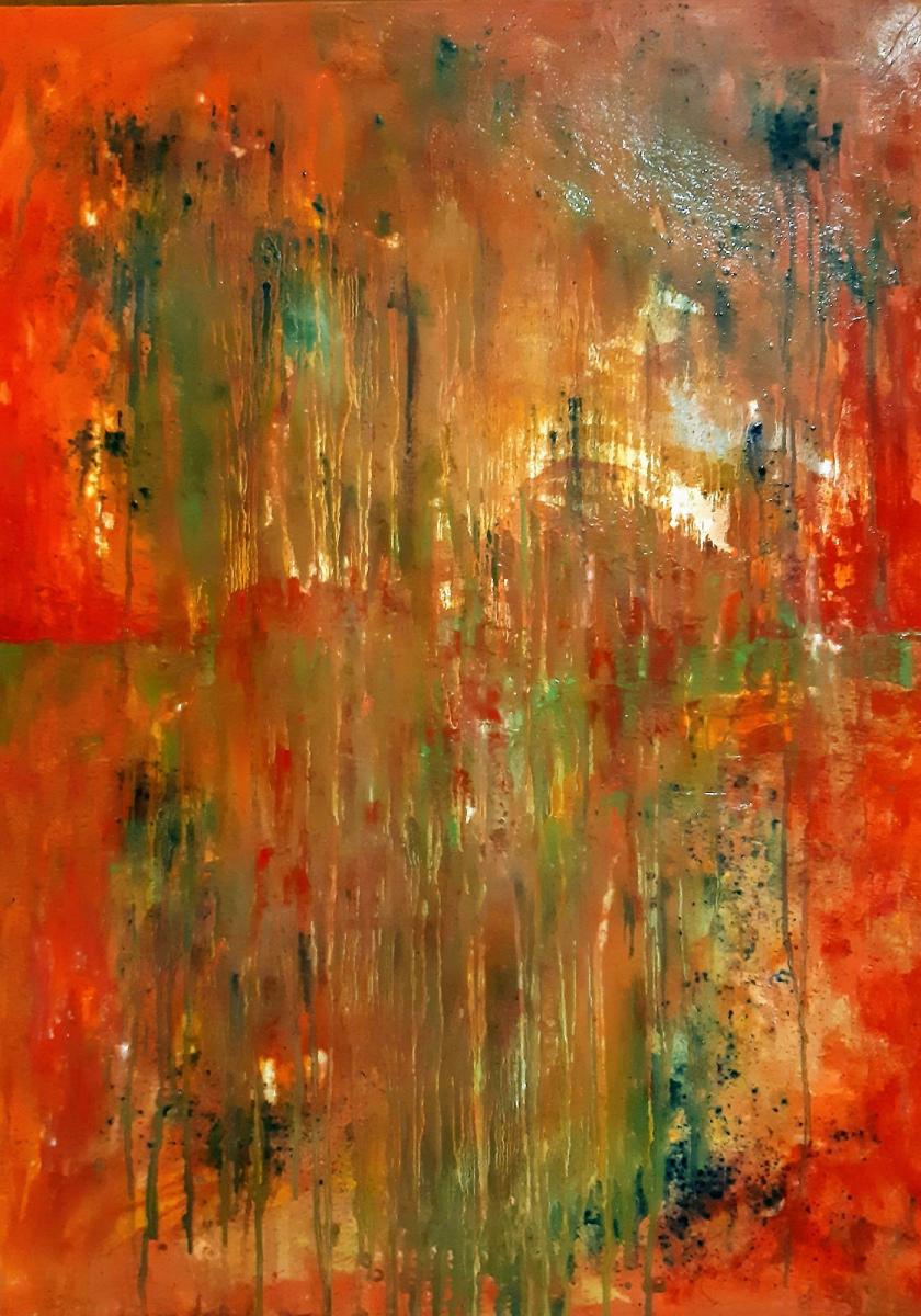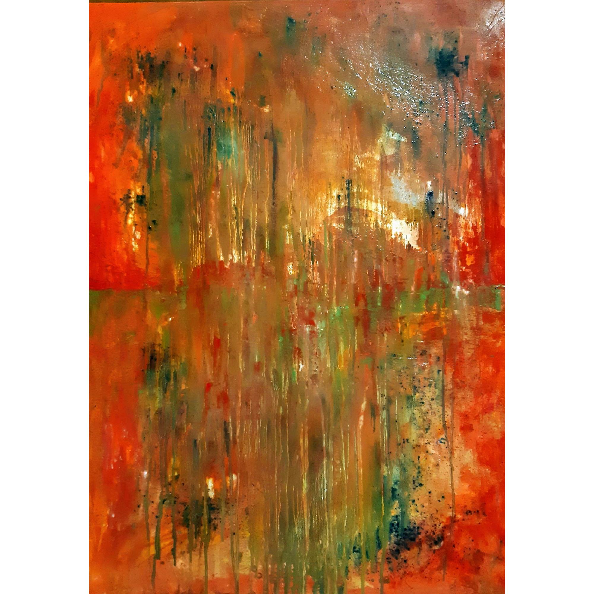 In quest'opera, ho esplorato la fusione vibrante degli oli, guazzo e pigmenti per evocare un senso di ardente ricerca e scoperta. Le tonalità ardenti di rosso e arancione, mescolate con tratti di verde e nero, rappresentano il fuoco interiore che guida l'uomo nella ricerca del suo personale Eldorado. È un simbolo di speranza, passione e la persistenza richiesta nel perseguire i propri sogni. Questo dipinto, con il suo stile affascinantemente astratto e simbolico, porta con sé un'energia che ravviverà e ispirerà qualsiasi ambiente, spronando chi lo osserva a cercare ardore e significato nella propria vita.