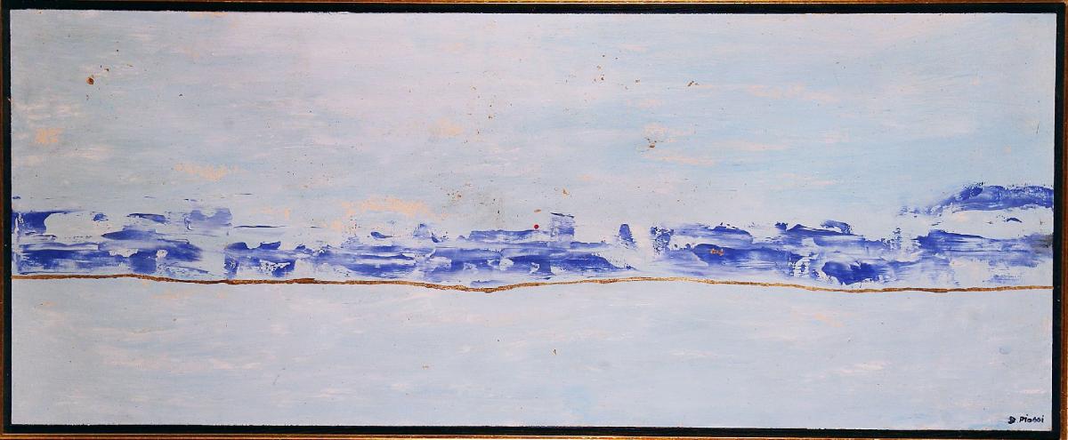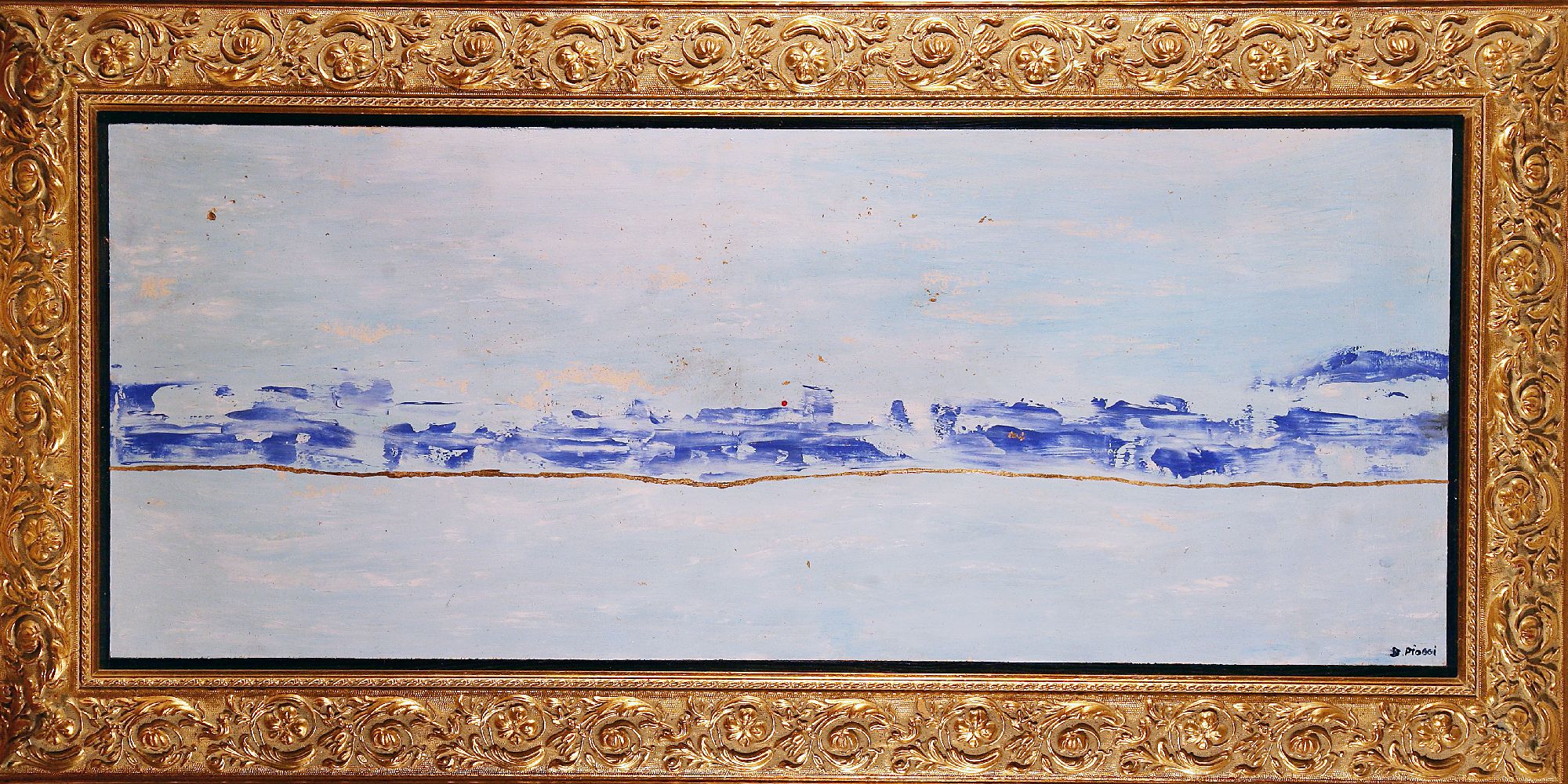- Studio di materiali olii e pigmenti naturali Landscape. La semplicità della spatolatura crea un paesaggio marino immaginario, che attraverso il contrasto del colore primario blu, si estende lungo l'orizzonte... Un Opera che vuole dare al fruitore una finestra immaginaria dove può trovare pace serenità meditazione ispirazione . La Cornice Barocca impreziosisce l' Opera , creando un "contrasto Suggestivo. Opera con Cornice Dorata Compresa nel Prezzo