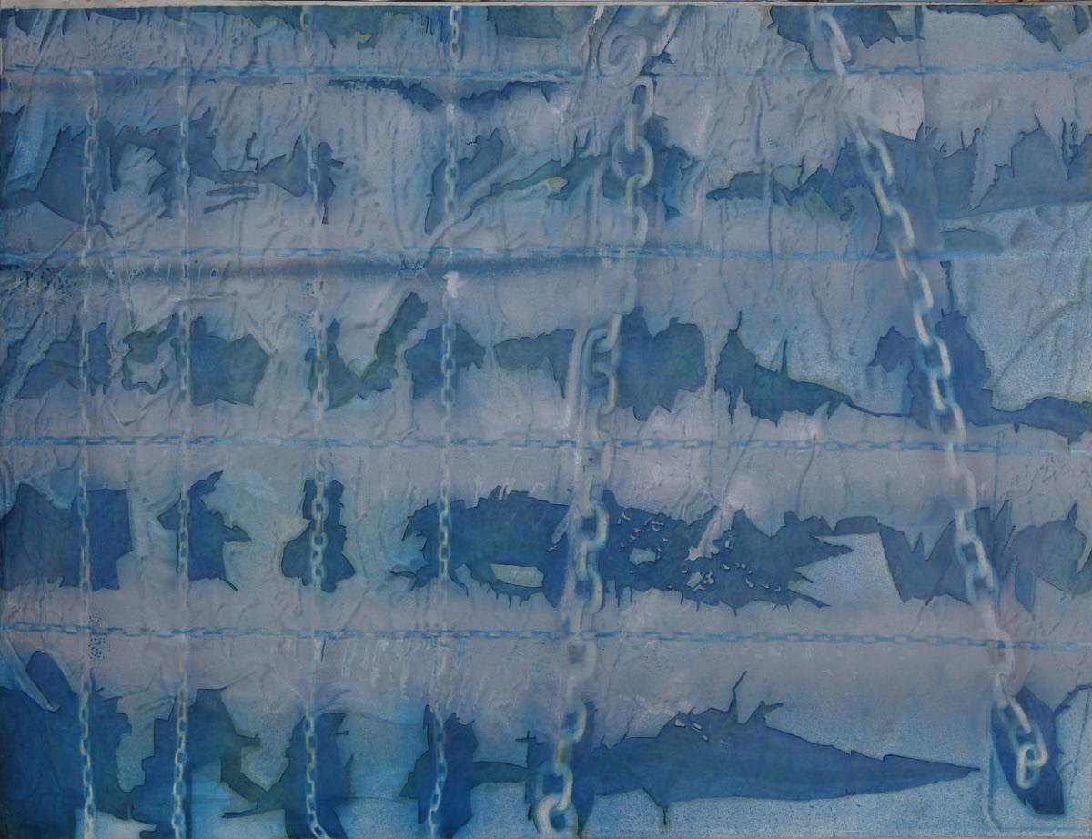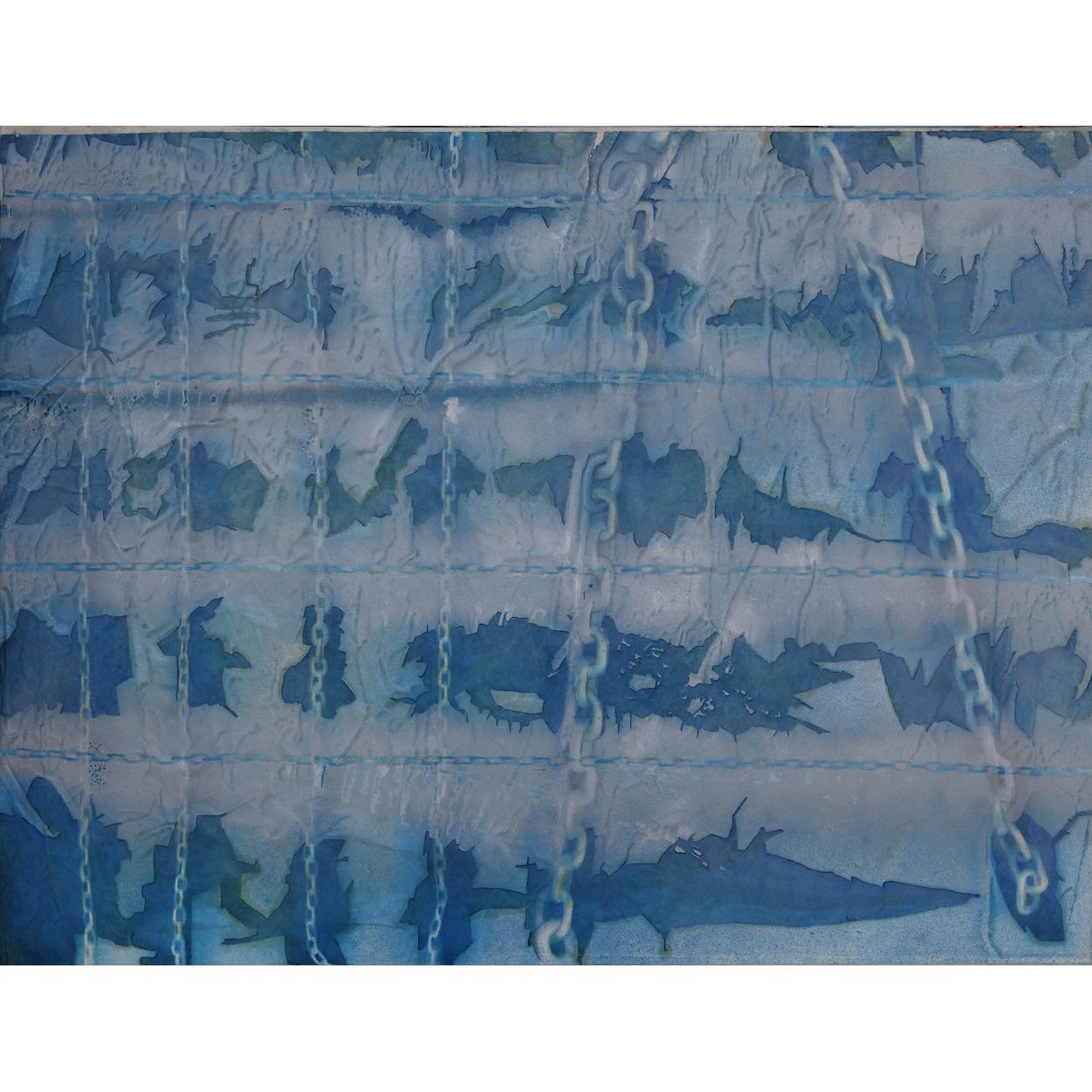 Ultimo dei concatenamenti, questo quadro risente certamente anch'esso del fatto che da cosa nasce cosa. Si va però sempre più a ricollegare ai temi cari della pittura come scrittura. Il bisogno dell'idea di carta, anche se sfilacciata, dove lasciare un segno.