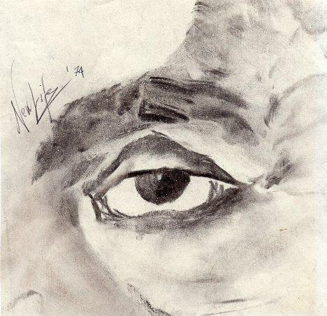 Disegno giovanile di prova eseguito con carboncino per un possibile ritratto su tela.