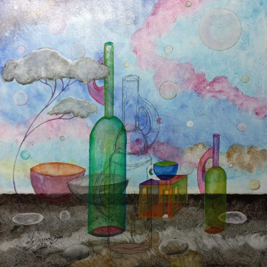olio acquerellato su tela, tela, 2024