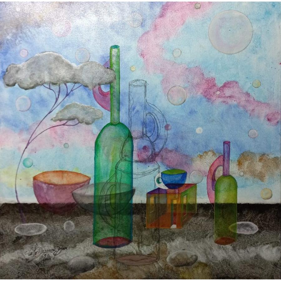 Volevo dire che:le pietre rappresentate in molte mie opere vogliono indicare che nella vita di ognuno di noi ci sono dei dispiaceri ,ma dipingendo le pietre trasparenti voglio dire che essi si possono superare ed andare oltre e quindi come spero abbiate notato,queste pietre sembra che lievitino da terra pronte a volare via con il vento e ritornare sereni-