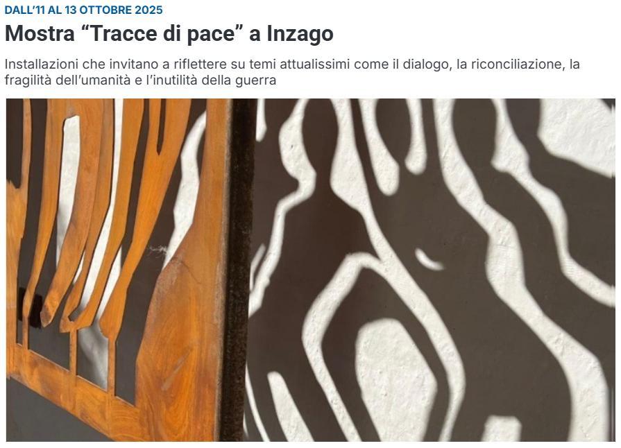 Una mostra per riflettereDall’11 al 13 ottobre 2025 (con inaugurazione sabato 11 ottobre alle 11), presso il giardino barocco di Villa Facheris, sarà allestita la mostra di installazioni “Tracce di pace” dell’artista Edi Mantovani.