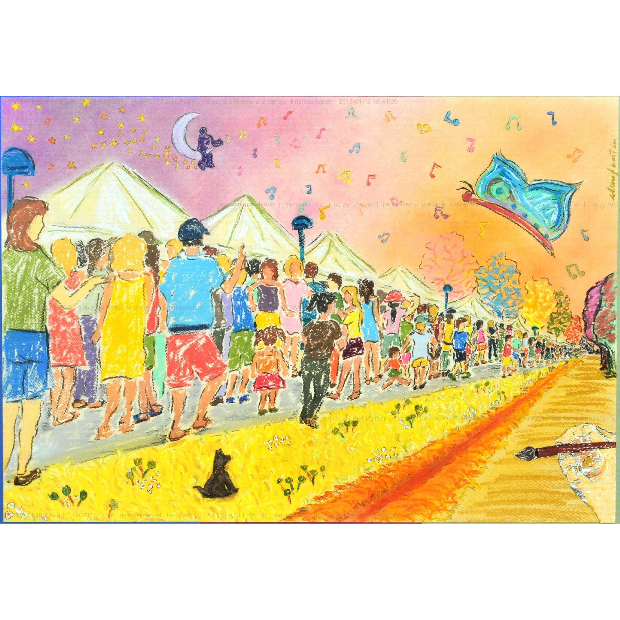Si certifica che l'artista Elena Fantini sabato 12 gennaio 2013 ha archiviato la foto dell'opera GA72205 dal titolo "PAESE IN FESTA - "La Rondona si dipinge di musica""