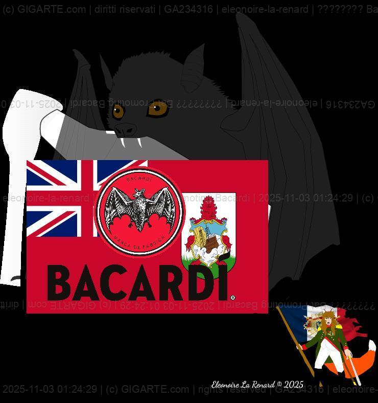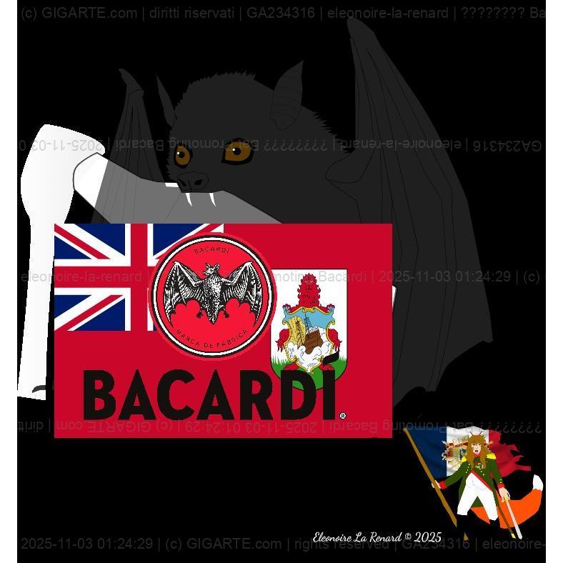 A bat promoting Bacardí rum, depicted in a stylized and colorful advertisement style.