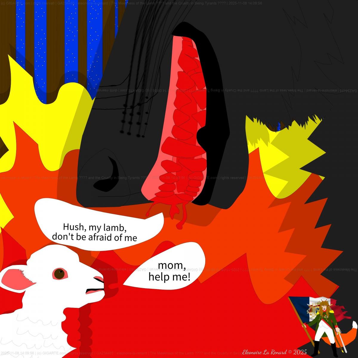 The lamb has been bitten by the wolf, just as a child is oppressed by an abusive adult. This image expresses the tyranny and injustice inflicted upon children—who, sooner or later, must rise to seek justice and denounce such crimes.
