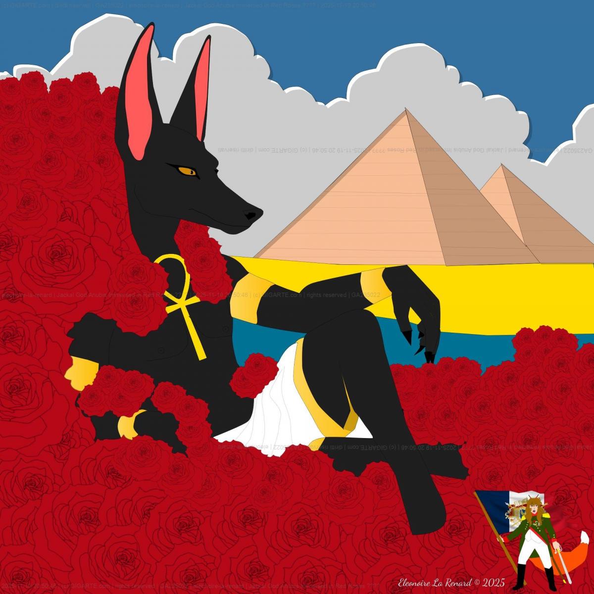 This is one of the many versions I created. I must be honest: no matter what I had to do, I truly missed drawing Egyptian deities. And especially the jackal god Anubis ??????. Here is the description to your questions: - Anubis is depicted with the body of a man and the head of a jackal ???? - He is the *protector of the necropolises* and the *god of embalming* ?? - He guides the souls of the dead into the afterlife ????, leading them before the tribunal of Osiris ?? - His sacred duty is to weigh the heart of the deceased against the feather of Maat ???? - On his chest, Anubis bears a *tattoo of the ankh* ???? – the “key of life,” symbol of eternal existence and divine protection. Anubis represents the transition between life and death, spiritual guardianship, and divine justice.