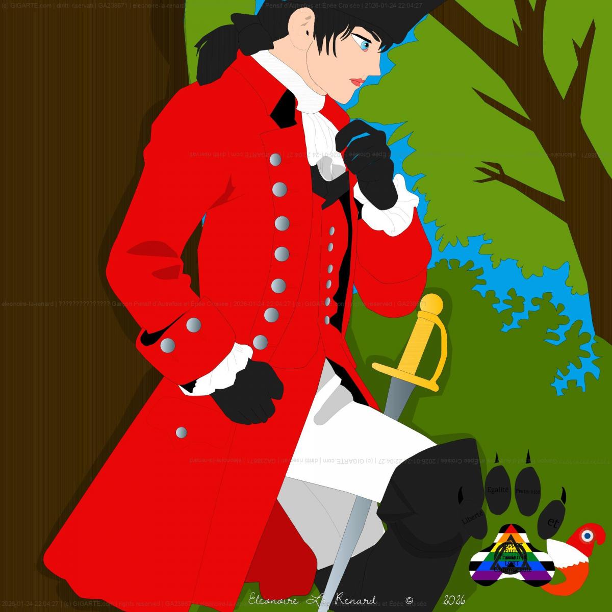 ??????????????? Garçon Pensif d’Autrefois et Épée Croisée