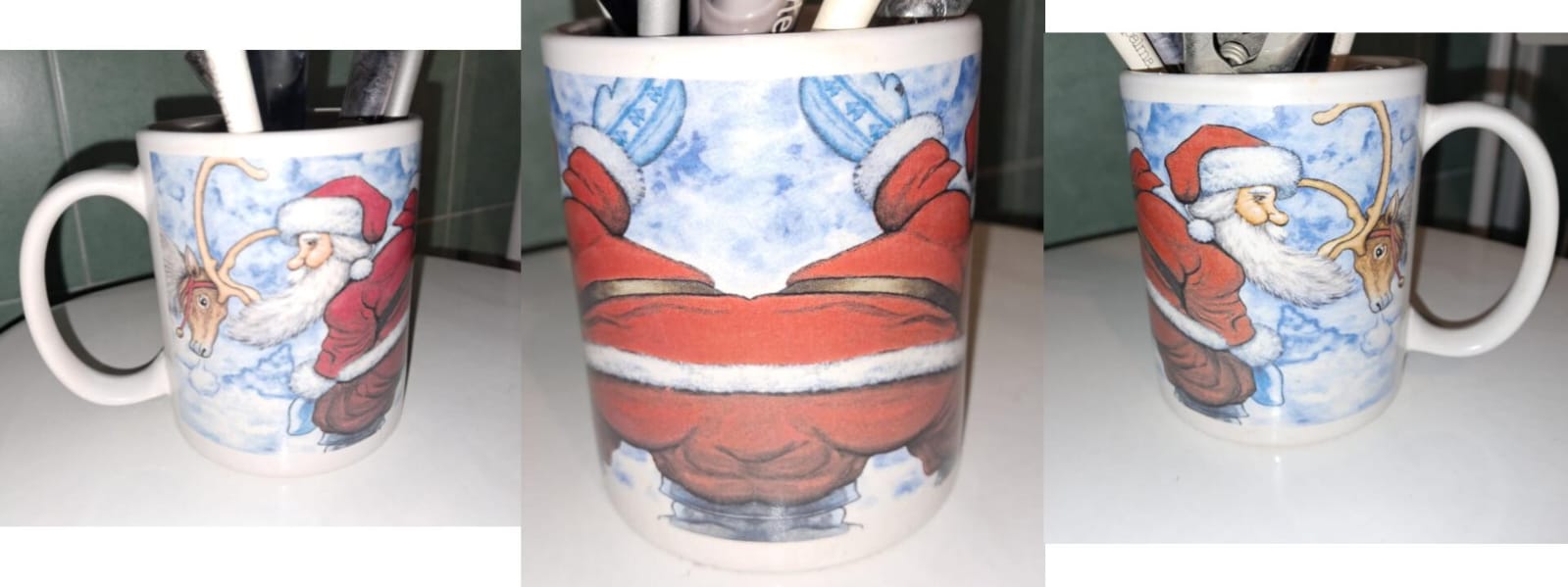 Christmas Candle & Fruit Fabric Cover,Storybook Santa & Reindeer Mug