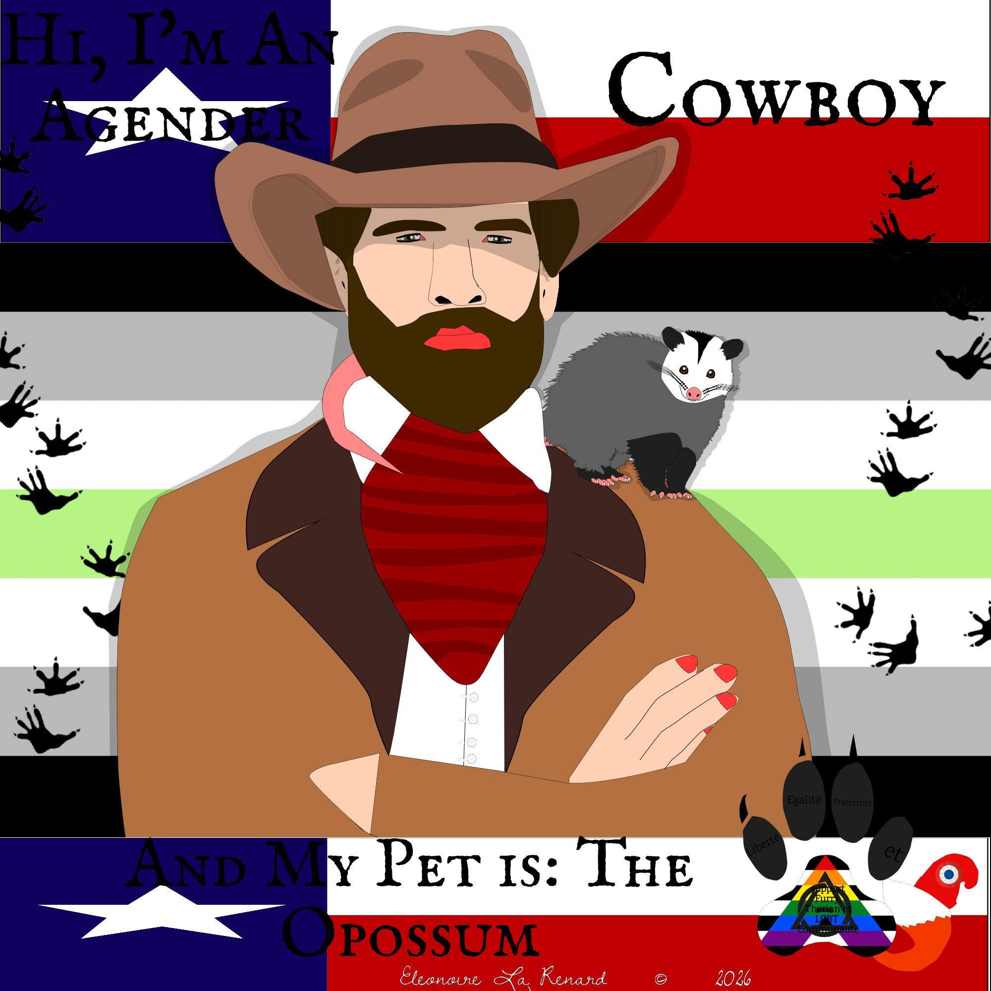 Insigne d'Identification Belge Pansexuel Jackalope,Identity Badge Agender Cowboy and His Pet Opossum